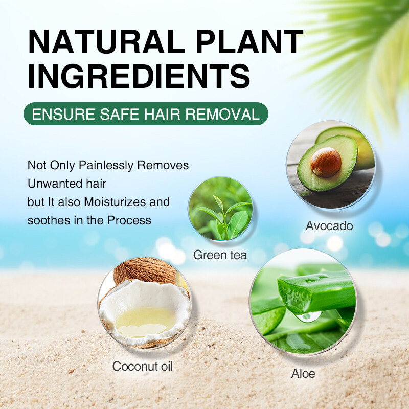 【NATURAL GENTLY INGREDIENT】 Safe formula with aloe vera, green tea and coconut oil to avoid redness and inflammation. Aloe has soothing and moisturizing effects. Green tea helps anti-inflammatory and coconut oil deeply moisturizes the skin. 【SAFE AND PAINLESS】 Hair removal cream uses aloe to calm the area you're removing, and provides a super smooth remove. No nicks or bumps left on the skin. You can't feel any discomfort and pain.【WITHOUT LEAVING DARK SPOTS】 Hair Remover Cream rapidly penetrates the hair follicle and effectively soften hair roots. Deep hair removal till roots and without leaving dark spots. Let your skin is smmoth and brighten. 【MOISTURIZING & MOIST】 This hair removal infused with aloe, green tea and coconut oil. It offering not only painlessly removes unwanted body hair, but it also moisturizes and soothes in the process. 【EASY TO USE】 Easy to operate, apply hair removal cream full cover the hair. Effectively removes hair in 7-10 minutes. Easy to carry and keep your gorgeous on every occasion.