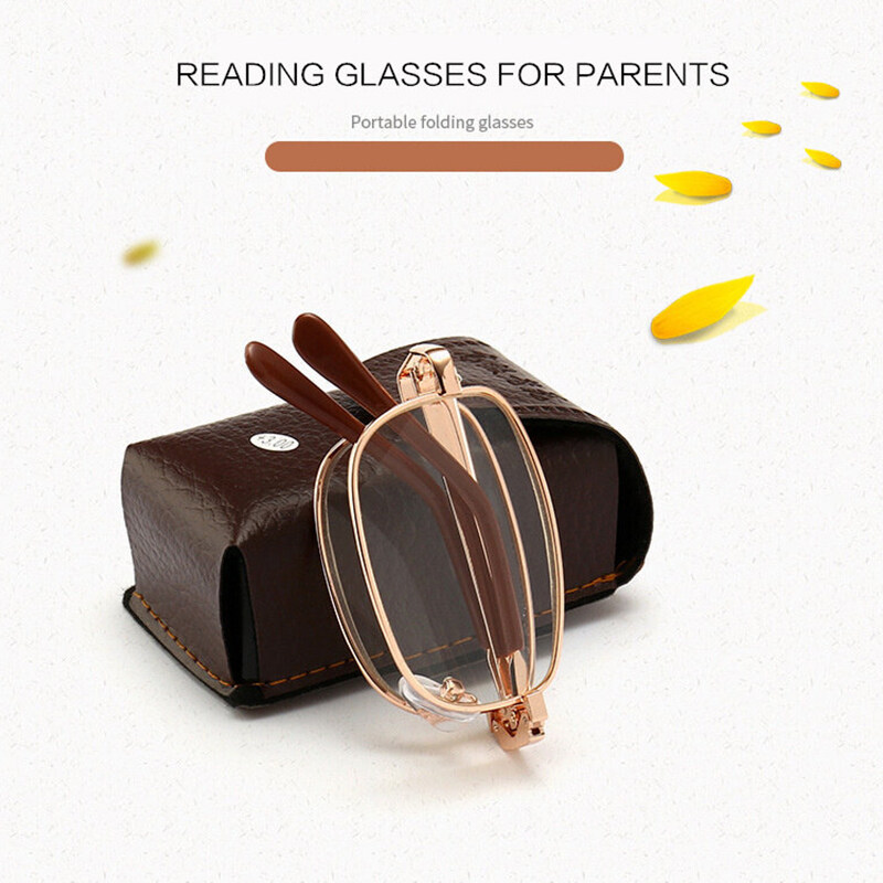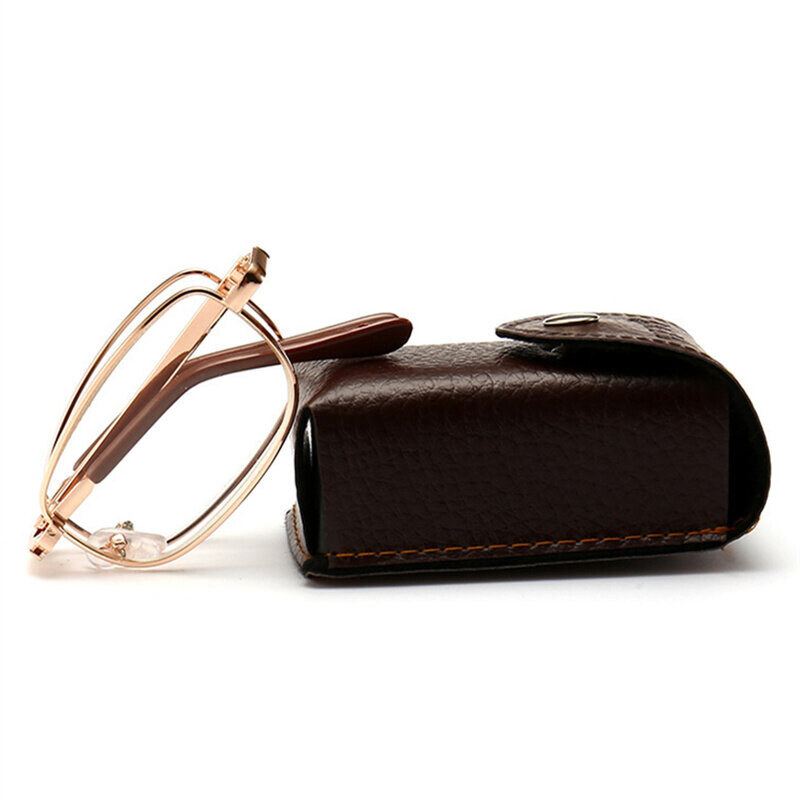 Folding Reading Glasses with Leather Case Anti-Blue Anti-Radiation Progressive Bifocal Glasses for Men Portable Magnifying Eyeglasses +100~+400 PTQ