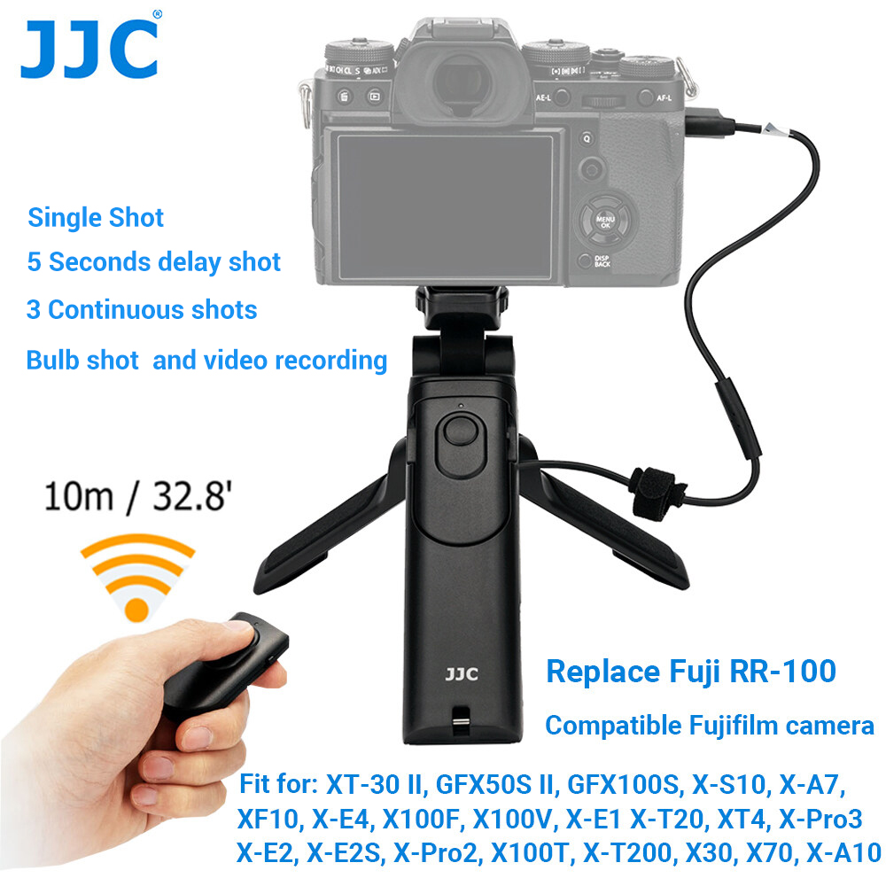 JJC RR-100 Shooting Grip with Wireless Remote Control for Fuji Fujifilm X-H2S X-T4 X-T3 X-T2 X-T30 X-T30II X-T20 X-T200 X-S10 X-E4 X-E3 X-PRO3 X-PRO2 X100V X100F Camera