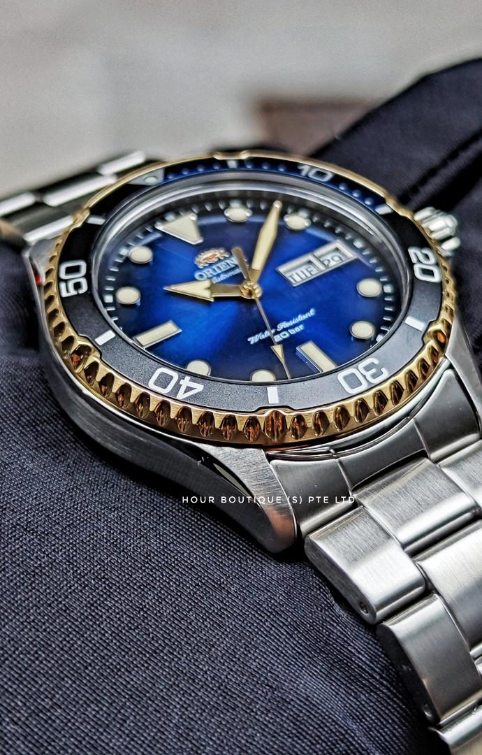 Orient Kamasu Limited Edition Blue Dial Gold Bezel Men's Automatic Divers Watch