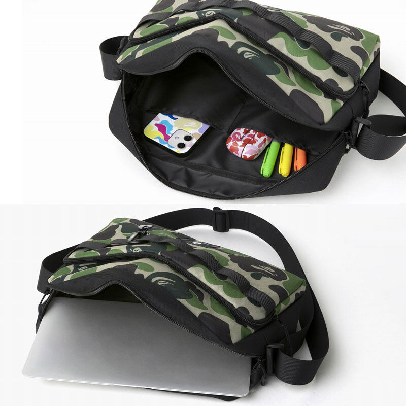This " 2021 A Bathing APE Camo With BAPE Head Keychain Messenger Bag " quite large capacity, can fit 13 inches table or tab , even A4 document also can fit into it ! New version and limited stock , while stock last