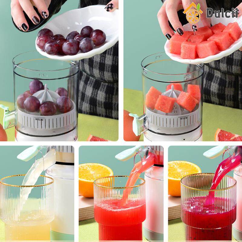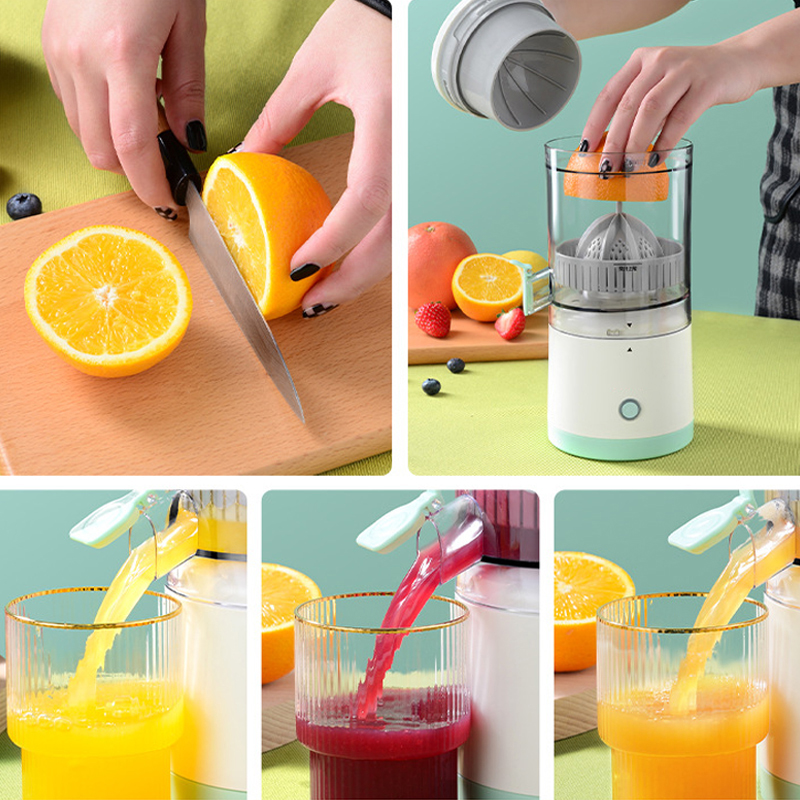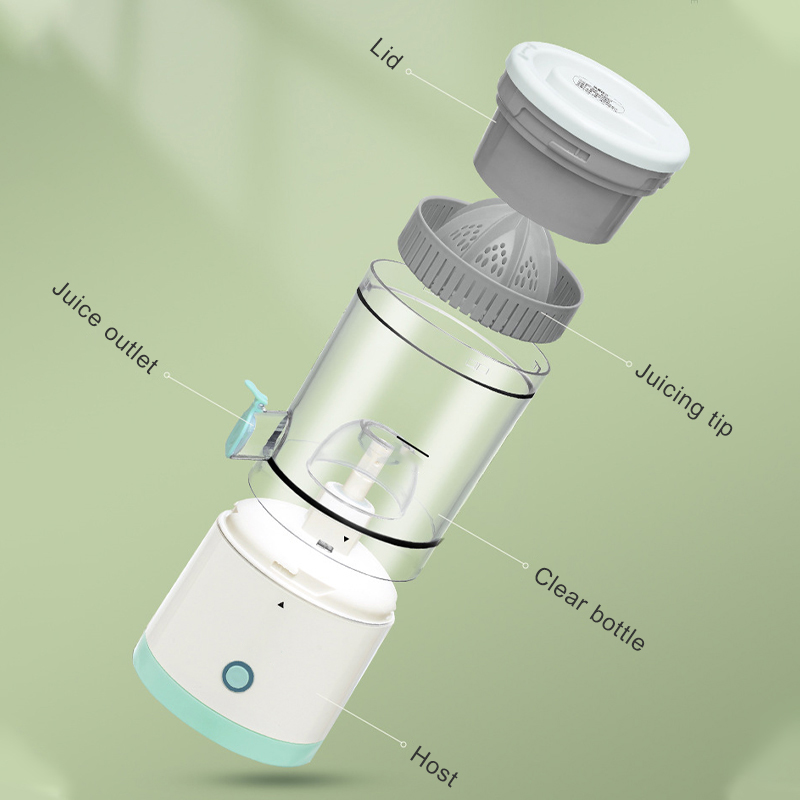 Material: ABS+Silicone+NylonMaximum juice output: 400mlCapacity: 500mlSpeed: 18000 rpmBattery capacity: 1200mAh, 3.7VFully charged: 3-4 hoursUse time: 1-1.5 hours (squeeze 25-30 oranges)