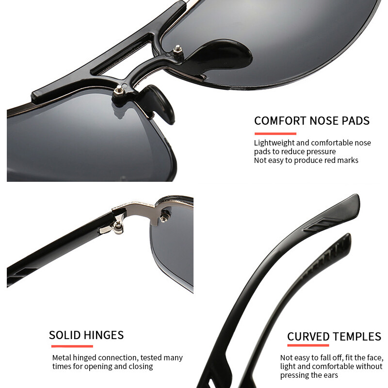 【Specification】 Glasses Type: Sunglasses Spectacle structure: frame Intensity: high Specification: Adult Mirror frame material: plastic and metal Function: UV400, polarized light Color: 4 colors Weight: 30g