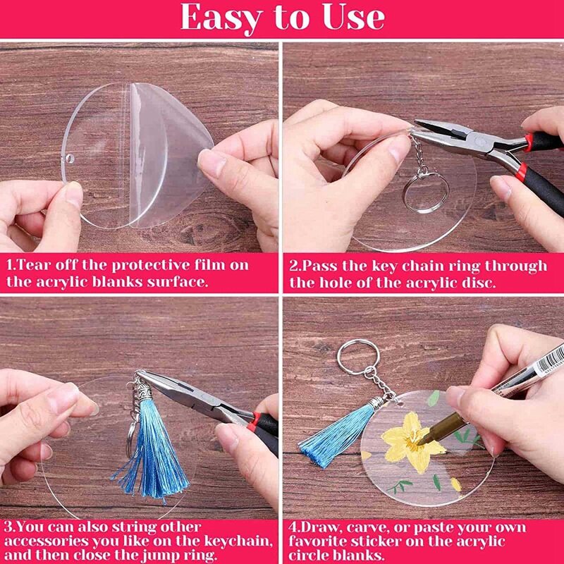 Easy to use - the clear keychains are made of high quality acrylic, you can easy to connect the key rings with chain, acrylic blanks and the tassels