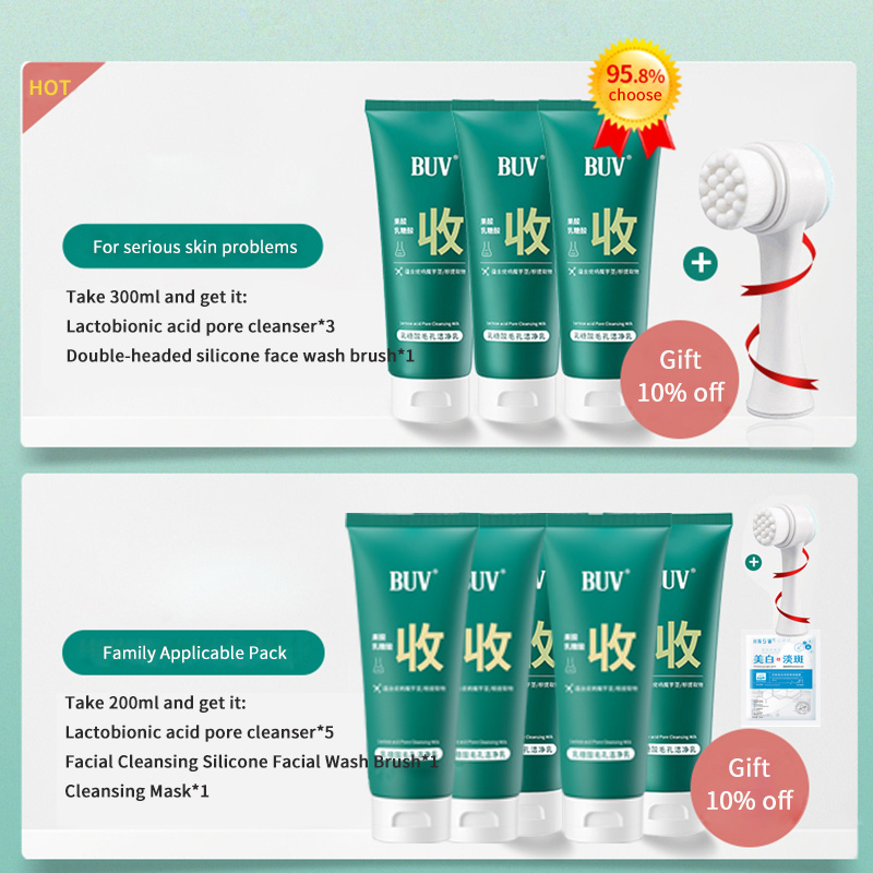 Product Name: BUV Lactobionic Acid Pore CleanserProduct specification: 100mlProduct Highlights: Cleans skin with delicate poresHow to use: After wetting the face with lukewarm water, take an appropriate amount of cleanser in Xuexin, rub it gently to create a rich foam, and apply the foam to the cheeks and forehead. Chin and other skin, massage from the inside out for a while, then rinse off with lukewarm water.