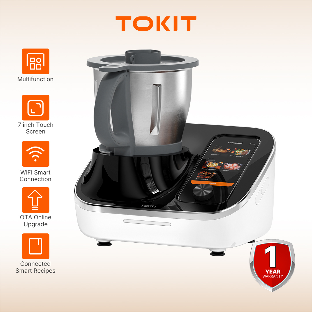 【BUY NOW GET FREE GIFT】TOKIT Omni Cook Robot All-in-1 Cooker with 21 Cooking Functions Built-in 7'' Touch Screen Guided Recipes Pre-clean, Chopper, Juicer, Blender, Weigh, Sous-Vide, Ice Crush and Mor