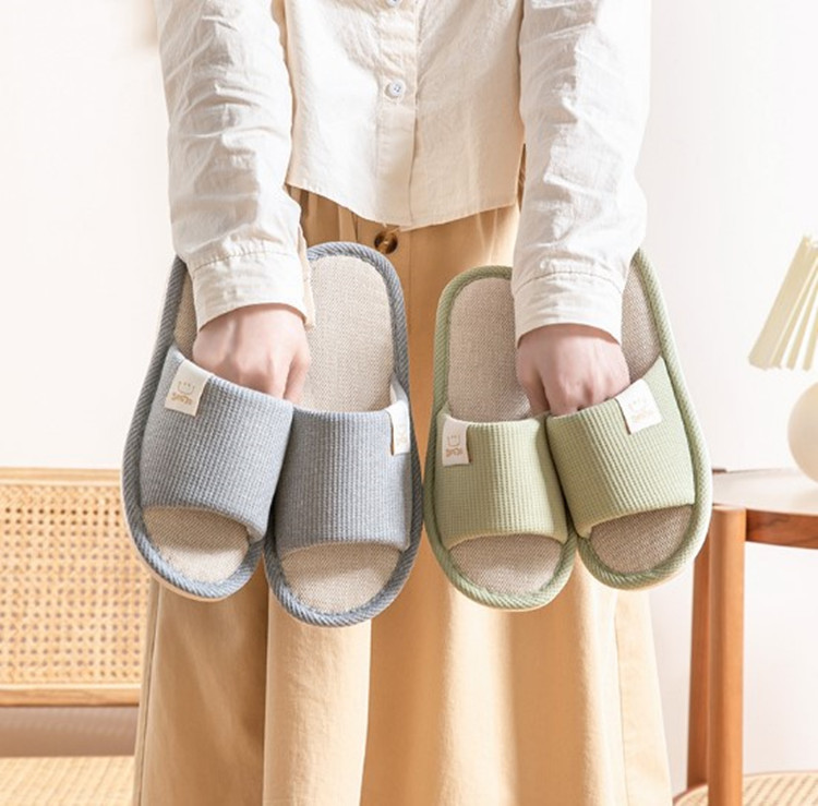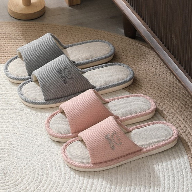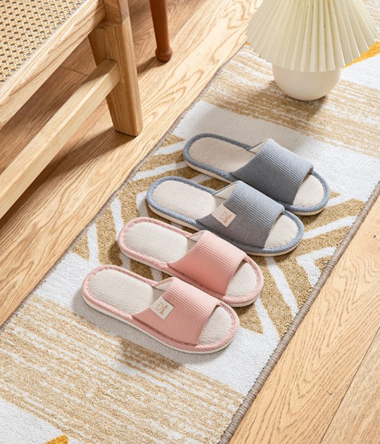 Home slippers New Four Seasons Linen Slippers Home Fashion Men and Women Cotton Linen Indoor Couples Korean Soft Sole Slippers Comfortable and High-grade Sweat-absorbing Material