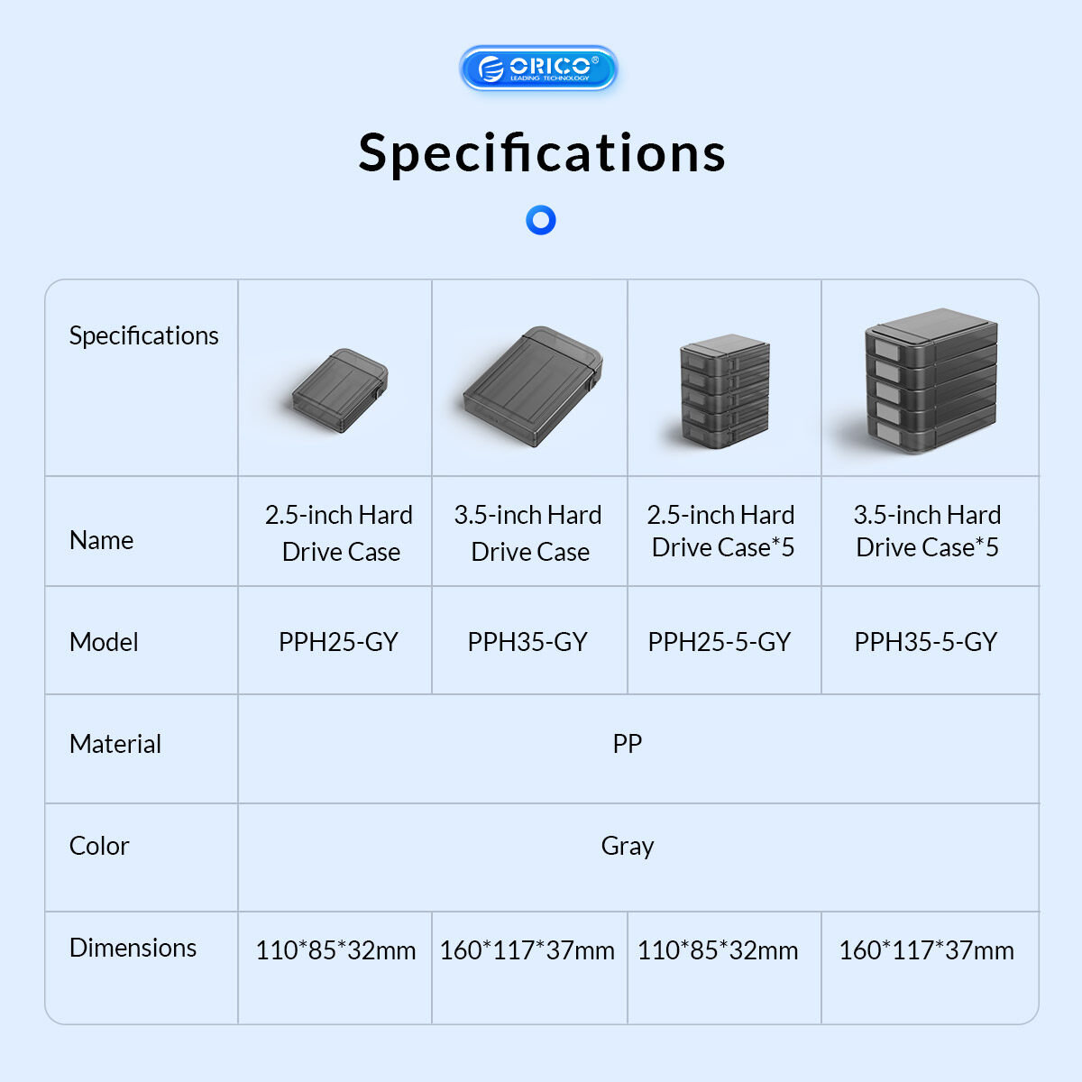 HDD Storage Case ORICO 5Pcs 2.5" Multi-disk Plastic Storage Bag 3.5" Hard Drive Disk Protection Box with Label, PP Material for Waterproof and Moisture Proof