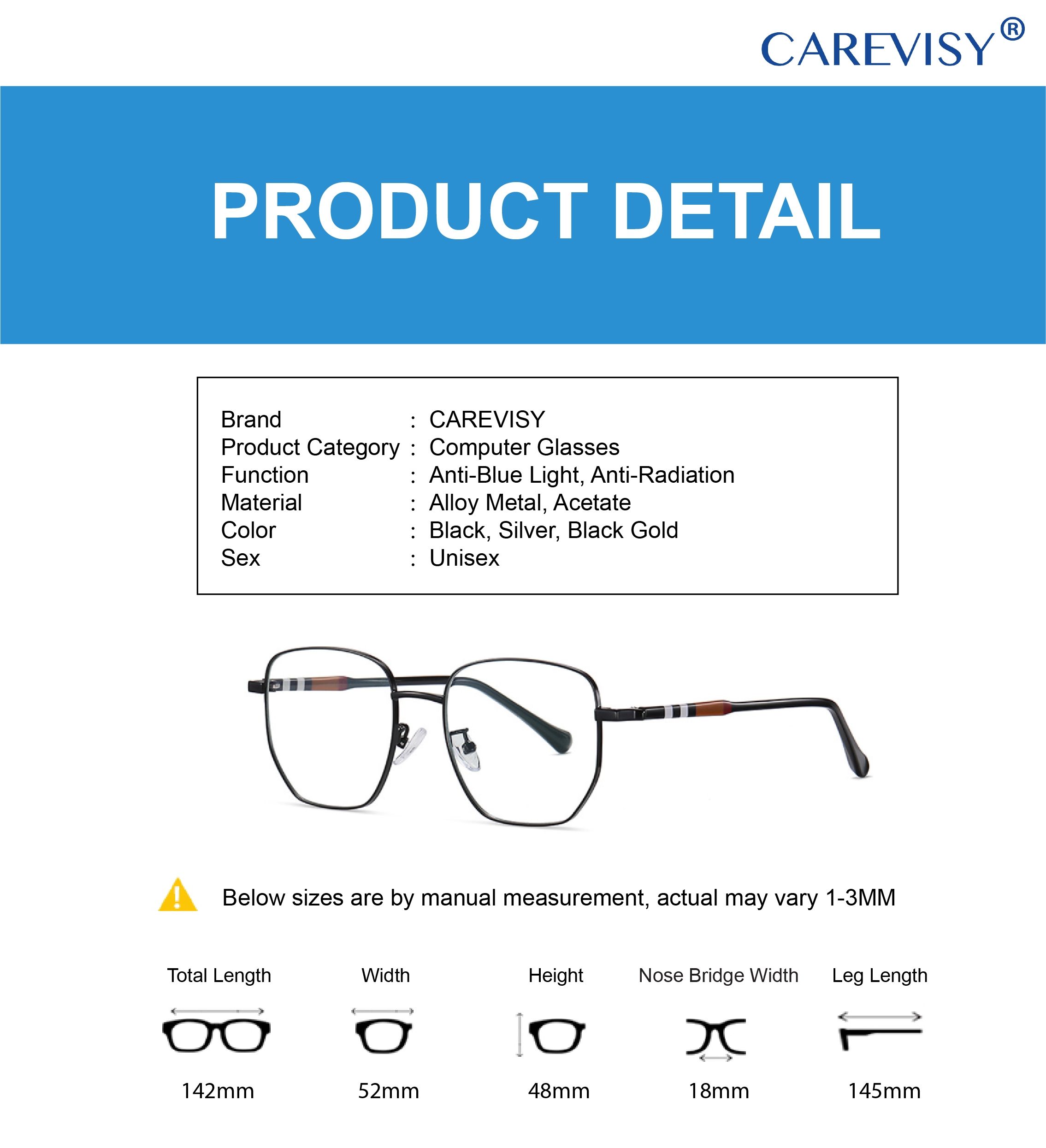 CAREVISY Computer Glasses Anti Blue Light Glasses Spectacles Blue Light Blocking Anti Radiation Anti Eye Fatigue PC Gaming Eyeglasses for Adults Men Women C6060