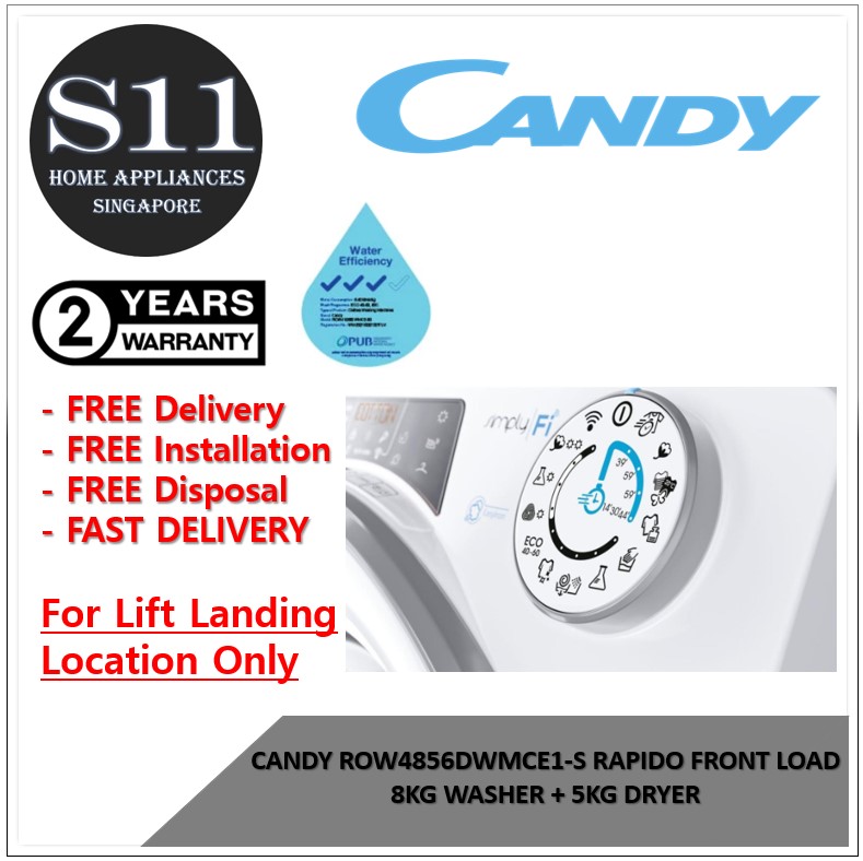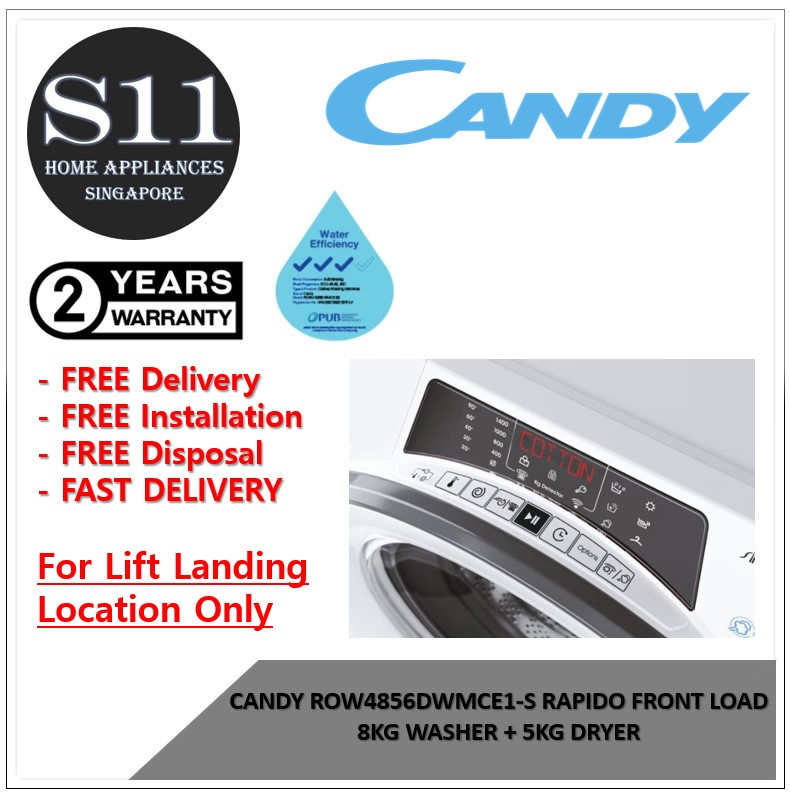 CANDY ROW4856DWMCE1-S 8/5 KG FRONT LOAD WASHER DRYER **NEW MODEL** *FREE DELIVERY/INSTALL AND DISPOSE*