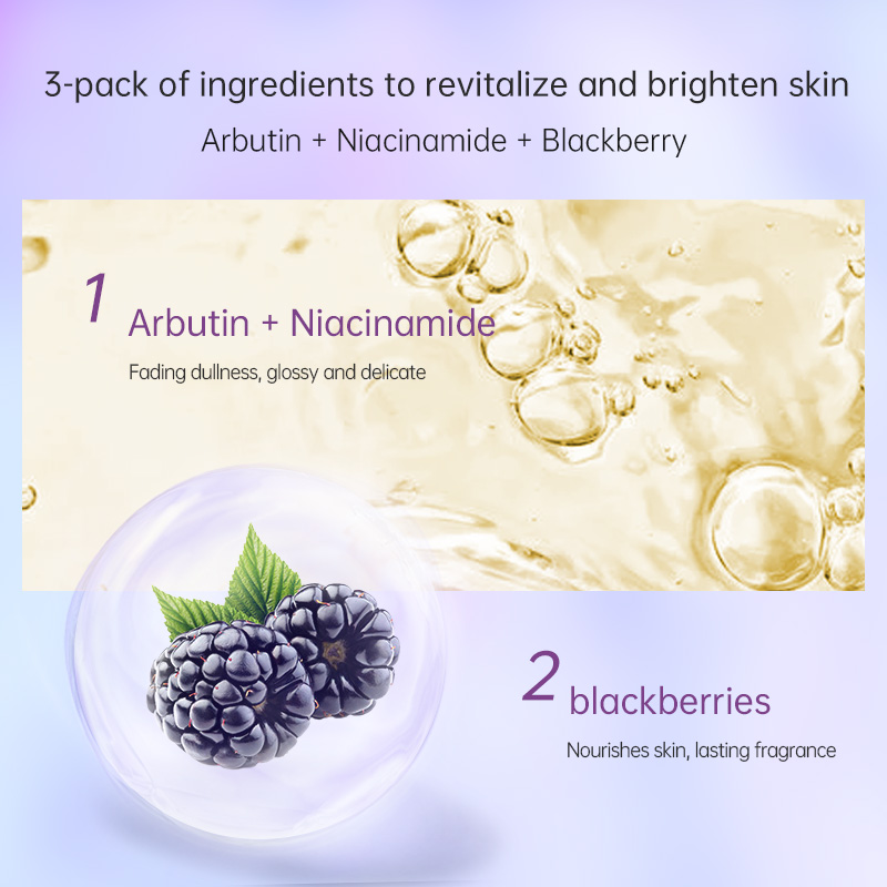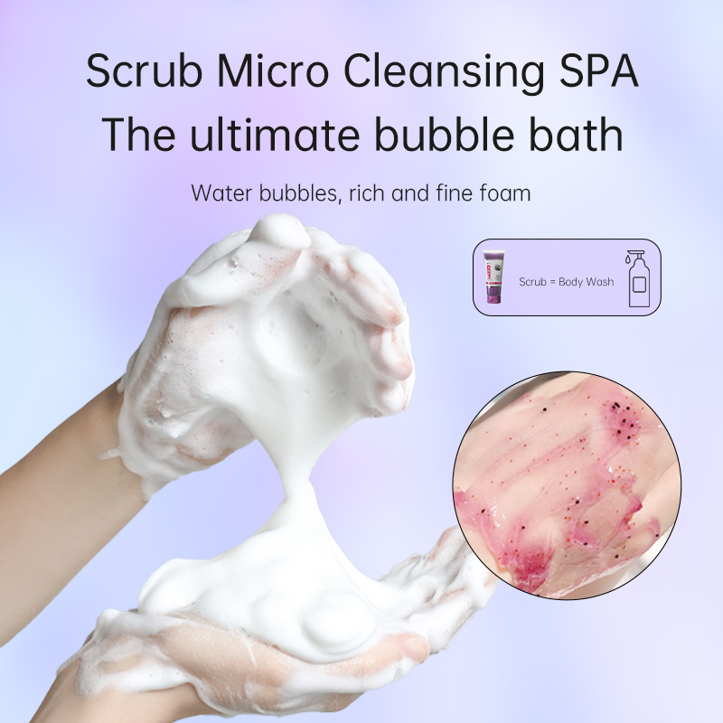 Product specification: 200mlProduct Name: Blackberry Peeling ScrubProduct ingredients: water, glycerin, beetroot, xylitol, acrylic acid, arbutin, butanediol, RUBUS VILOSUS, PKG-40, EDTA two dosesProduct efficacy: ―Contains blackberry extract, which cleans the skin while refreshing, nourishing and moisturizing, leaving the skin silky, moist and shiny after washing.How to use: Wet the area that needs to be scrubbed with warm water first, then take the size of your thumb and apply it evenly on the skin such as hands and feet, massage clockwise with moderate force for 2 to 3 minutes, until the dead skin is rubbed out, then rinse