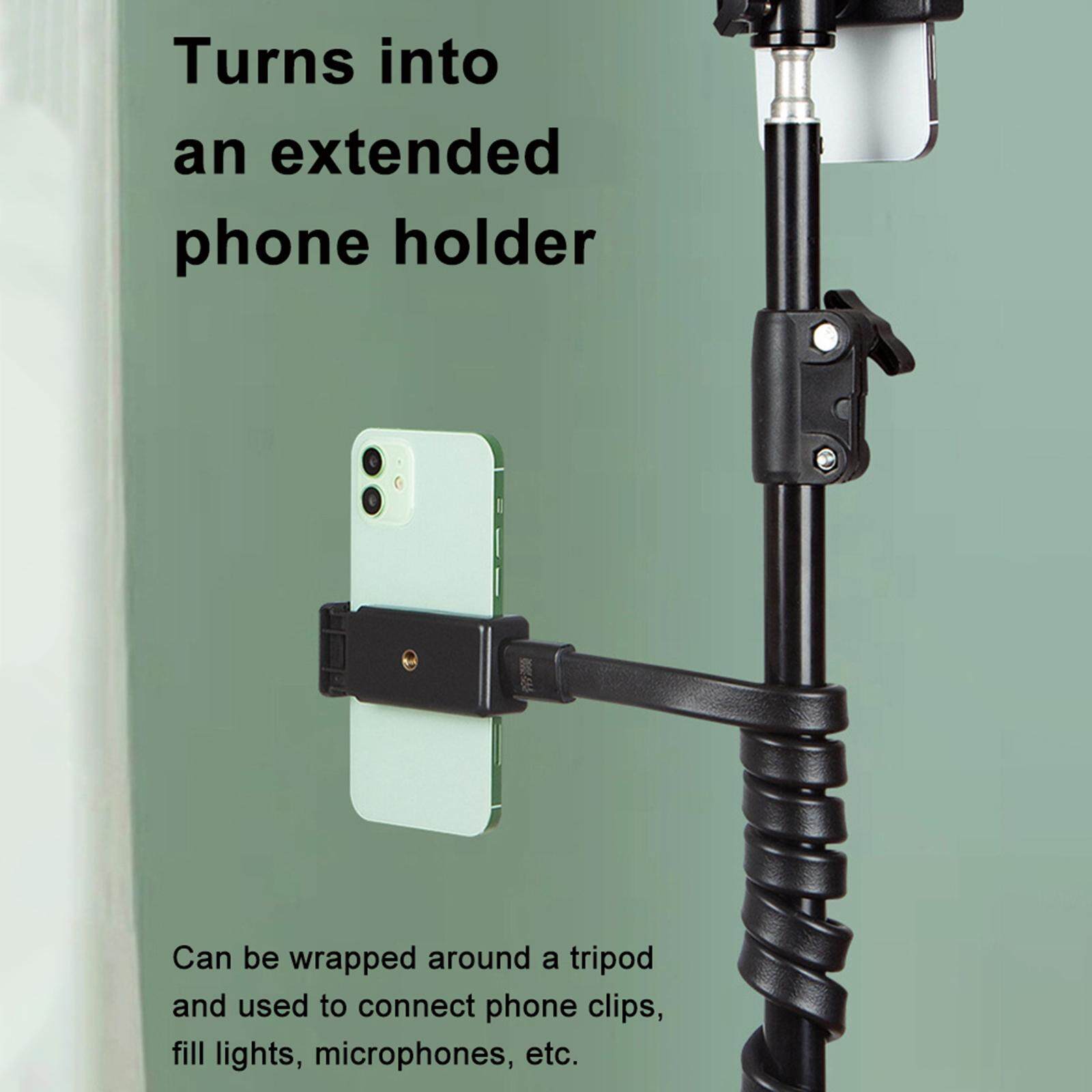 - Turn To an Extended Phone Holder: Can be wrapped around a tripod and used to connect your phone clips, fill lights, microphones and so on