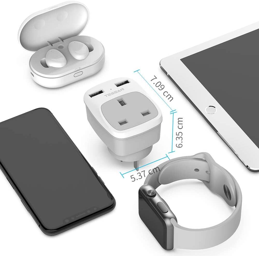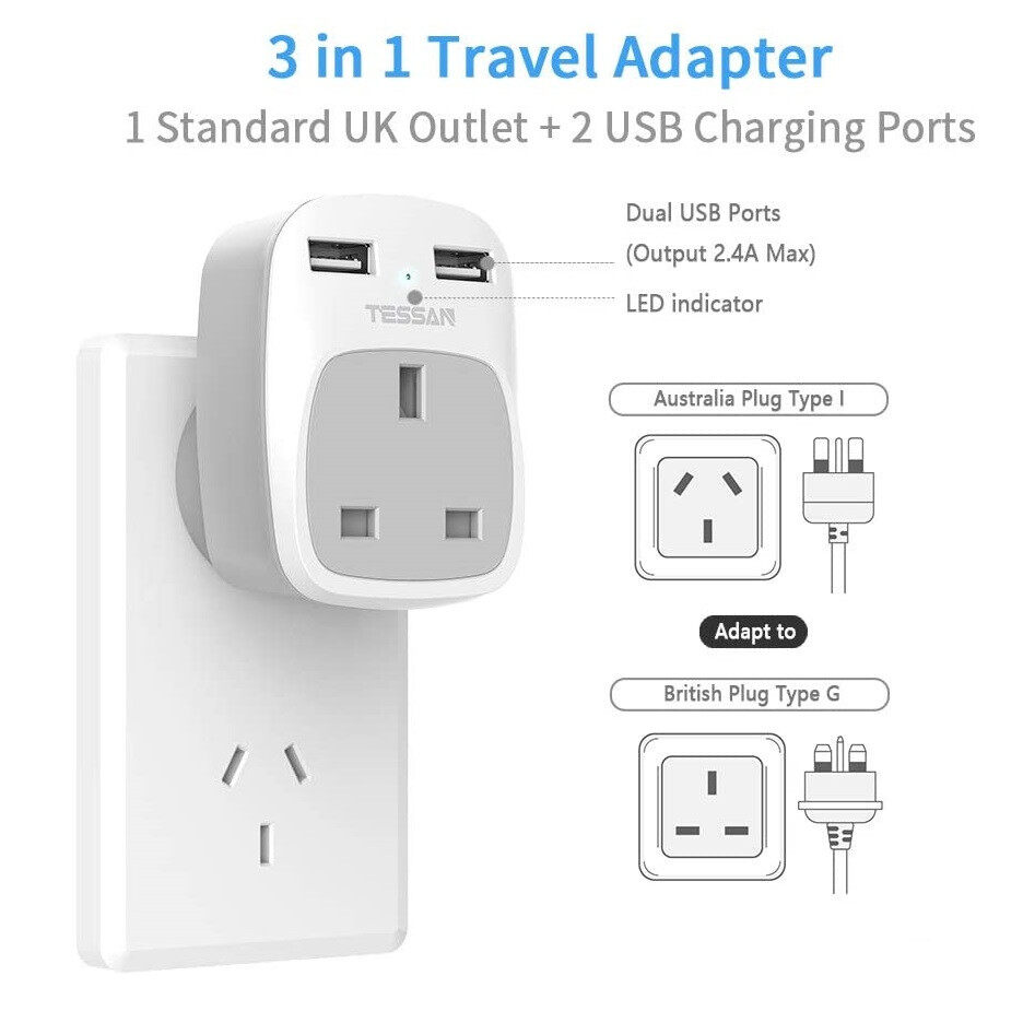 TESSAN 3 in 1 Power Socket for Singapore to Australian New Zealand Fiji Argentina and more (Type I), Australia China Plug Travel Adaptor AU Outlet Travel Adapter with 2 USB Ports-3 Pin AU Plug Austral
