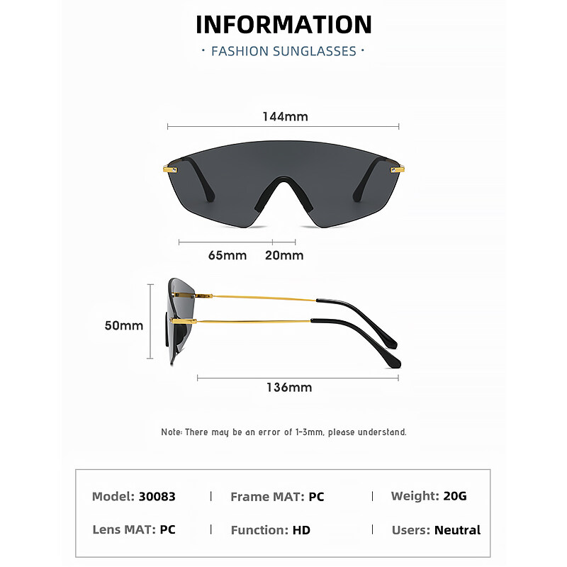 PTQ Sunglasses 2022 New One-piece PC Lens Shades for Men and Women Ins Style Original Design Personality Sun Glasses