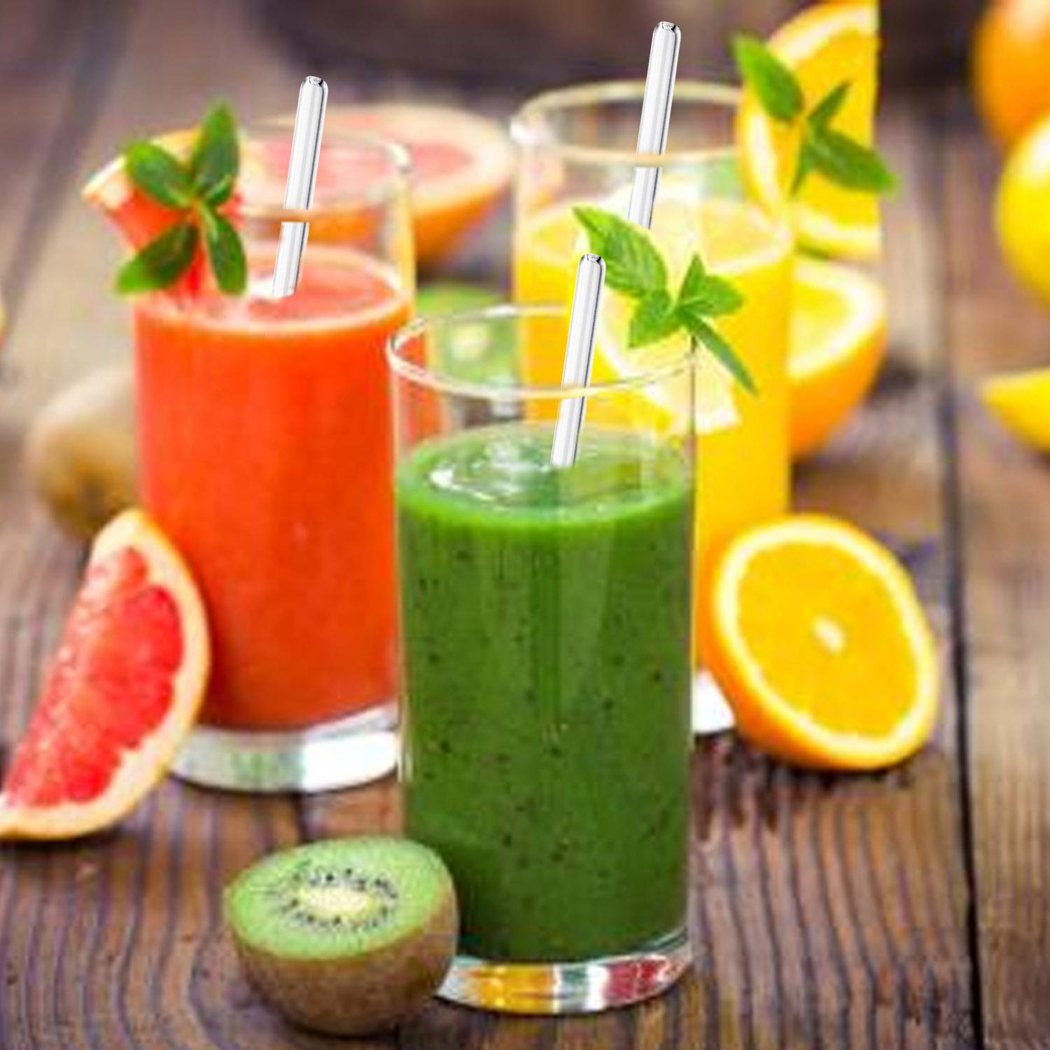 3pcs Reusable Clear Straight Drinking Glass Straws + 3pcs Bent Straws + 2pcs Cleaning Brush + Storage Box for Cold Bevarage Cocktail Coffee 180 x 8 mm