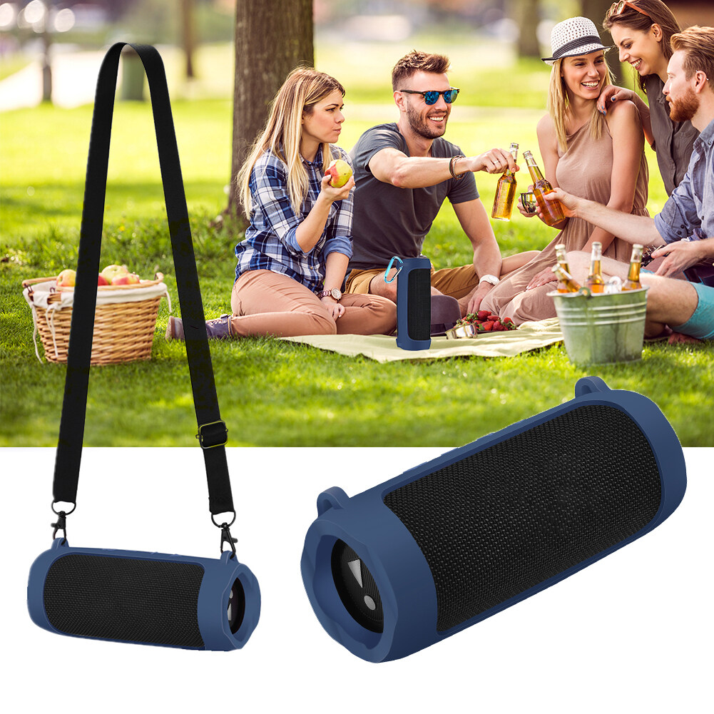 Silicone Speaker Protective Case with Carabiner Waterproof Wireless Bluetooth-compatible Speaker Carrying Pouch Cover Adjustable Strap Portable for JBL Flip 6/Flip 5