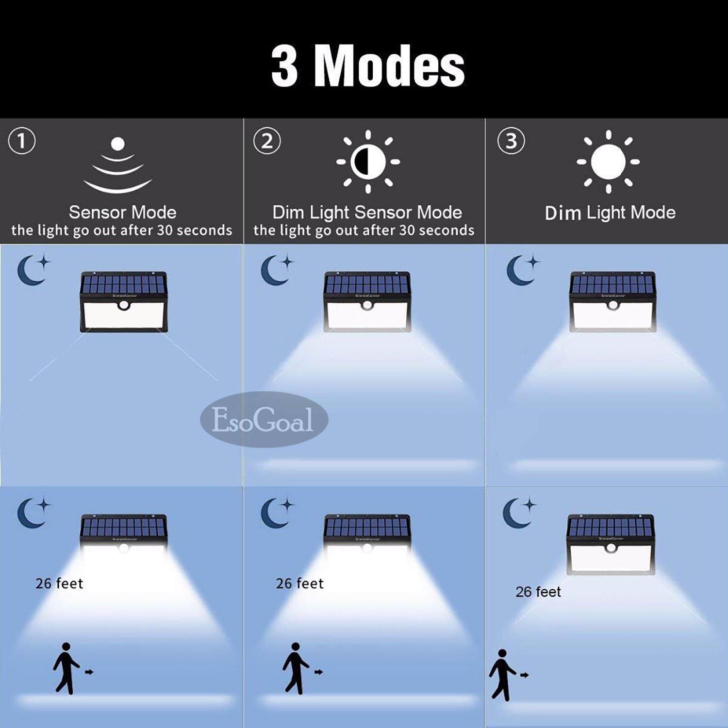[Promotion!] EsoGoal 35 LED Solar Lights Outdoor Lighting Waterproof Solar Powered Motion Sensor Light Wireless Security Lights Outside Wall Lamp for Driveway Patio Garden Path(Ready Stock)