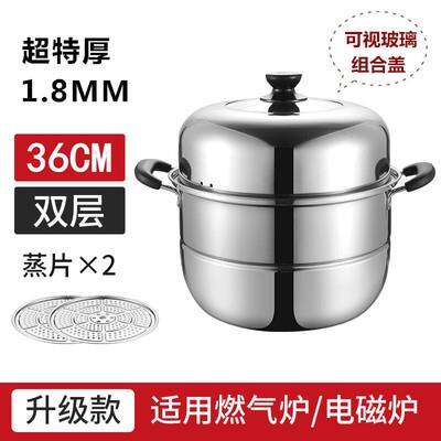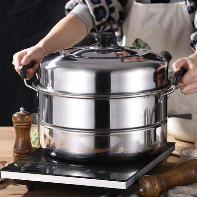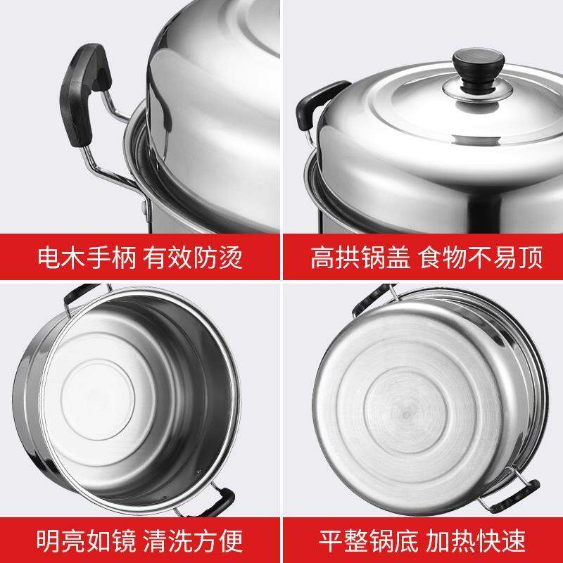 Thickened Double-Layer Extra Large Household Steamer Stainless Steel Three-Layer Steamed Bun Steamer 34 36 40cm Commercial Soup Pot