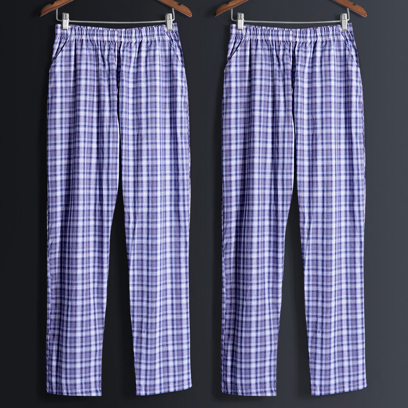 2 Pieces Pajamas Men's Trousers Cotton Home Pants Loose Cotton Plaid Spring and Autumn Thin Home Pants Summer Air Conditioning Pants