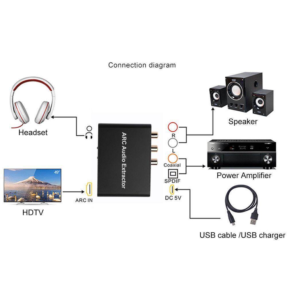 HDMI ARC Audio Extractor Converter Adapter Splitter for Optical Fiber Coaxial RCA 3.5mm Headset TV