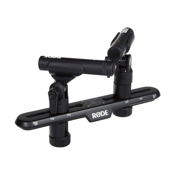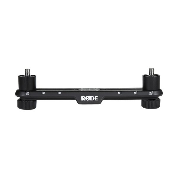 The RØDE Stereo Bar is a robust solution for mounting two microphones in a stereo array. With clearly marked spacing of up to 20cm, as well as angle and measurement indicators for ORTF and XY positioning, the RØDE Stereo Bar makes it quick and easy to achieve complex recording arrays. The 5/8” mounting threads are supplied with accompanying spacing clips to allow for easy positioning for stacked arrays, and the robust ABS construction makes the Stereo Bar stable and durable, allowing it to easily support the weight of two large diaphragm microphones such as the RØDE K2.