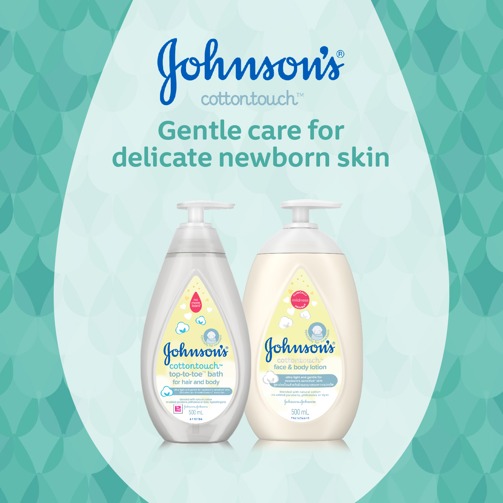 Johnson’s® Cottontouch™ Face & Body Bath is Ultra light and gentle for newborn’s sensitive skin. Your baby's skin is up to 30% thinner than yours so it needs ultra gentle and delicate care.