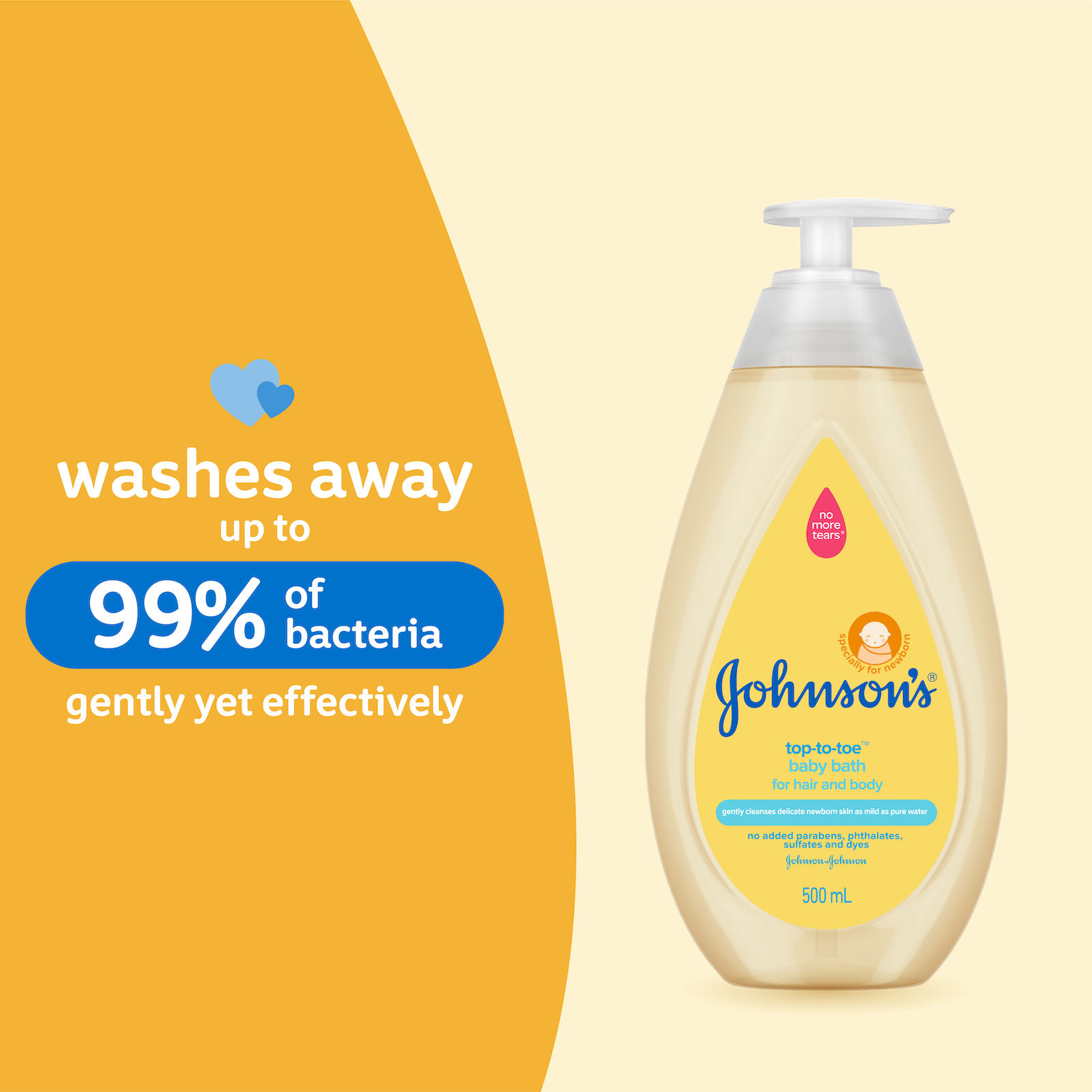 Johnson's® Top-To-Toe™ hair & body baby bath gently cleanses delicate newborn skin and as mild as pure water. Newborn skin both absorbs and loses moisture faster than adult skin so it needs superior moisturization