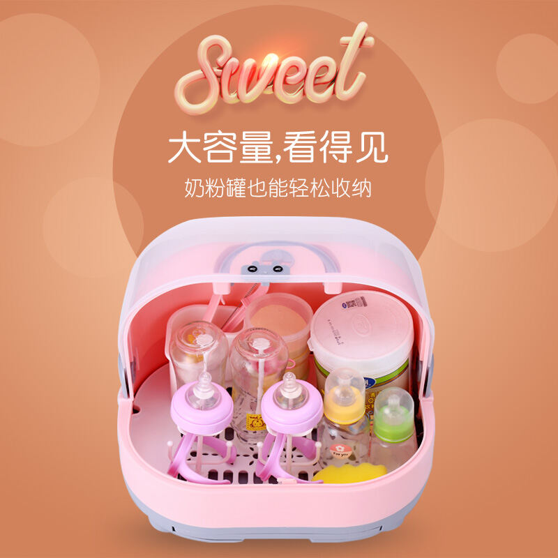 Baby Bottle Storage Box Portable Large Dust-Proof Drying Draining Rack Baby Tableware Organizing Dry Storage Box