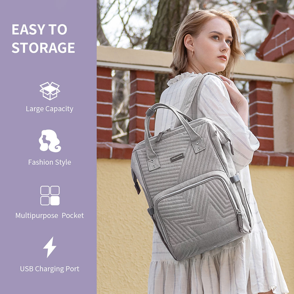 Sunveno Multifunction Diaper Bag Large Capacity Mommy Backpack, Waterproof Travel Nappy Bag, Quilted Fashion Maternity Bag with Front insulated Bottle Pockets