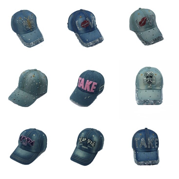 This denim hat belongs pure handmade hot drilling, many patterns and styles, support physical/night market mixed batch, large quantity and more favorable