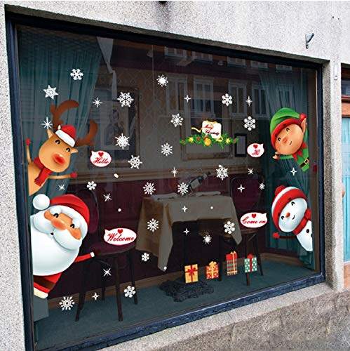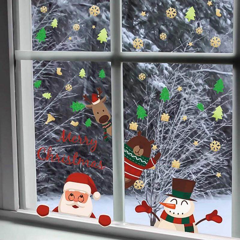 【lightingeverthing】 Christmas Windows Glass Wall Sticker Film Wall Removable Santa Claus Stickers 30*90cm