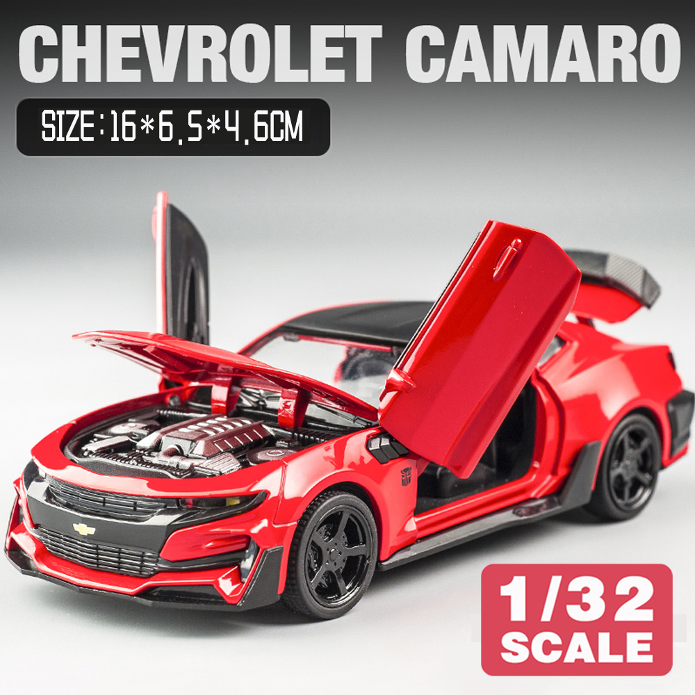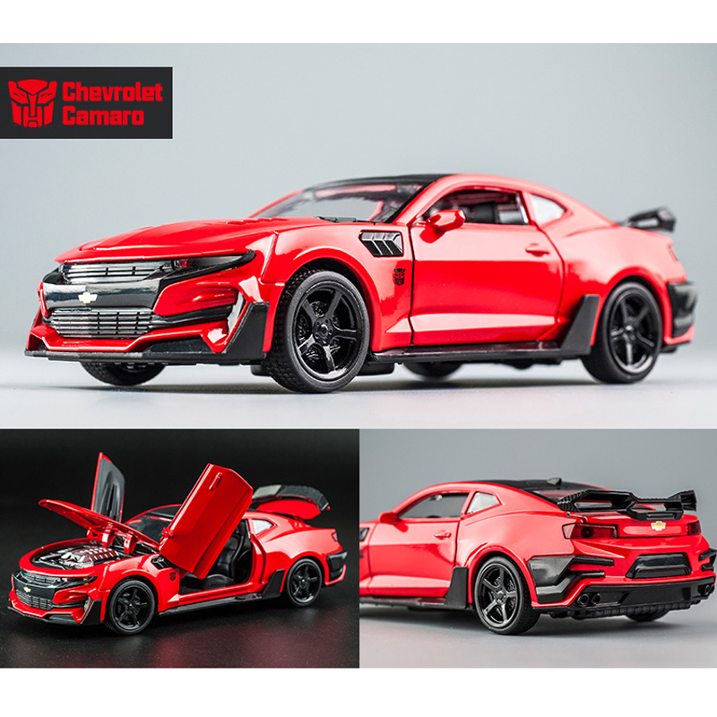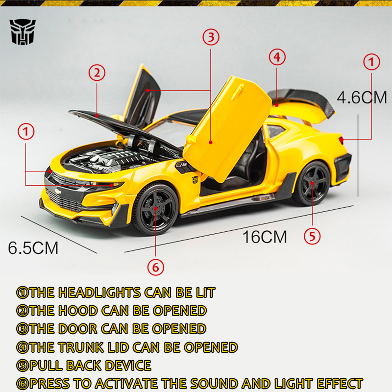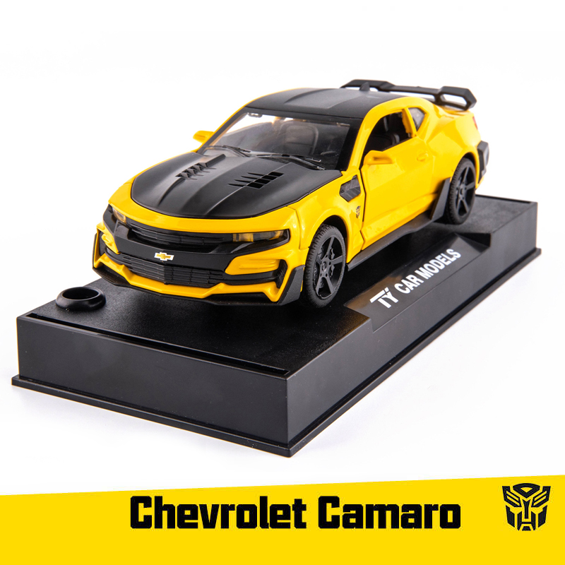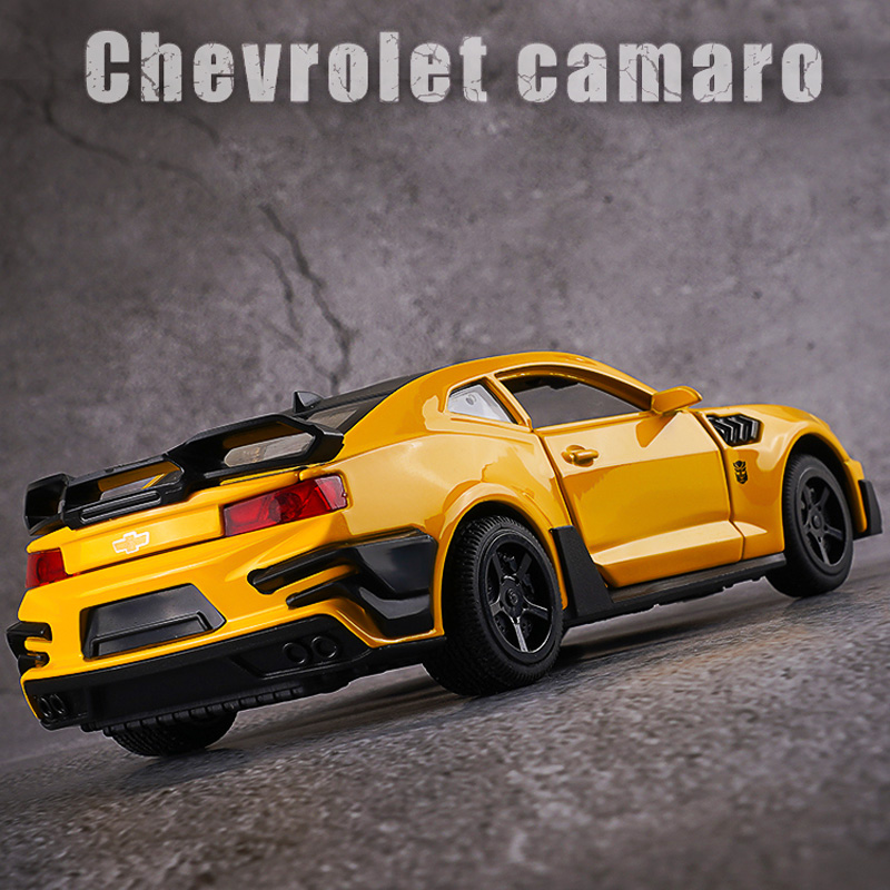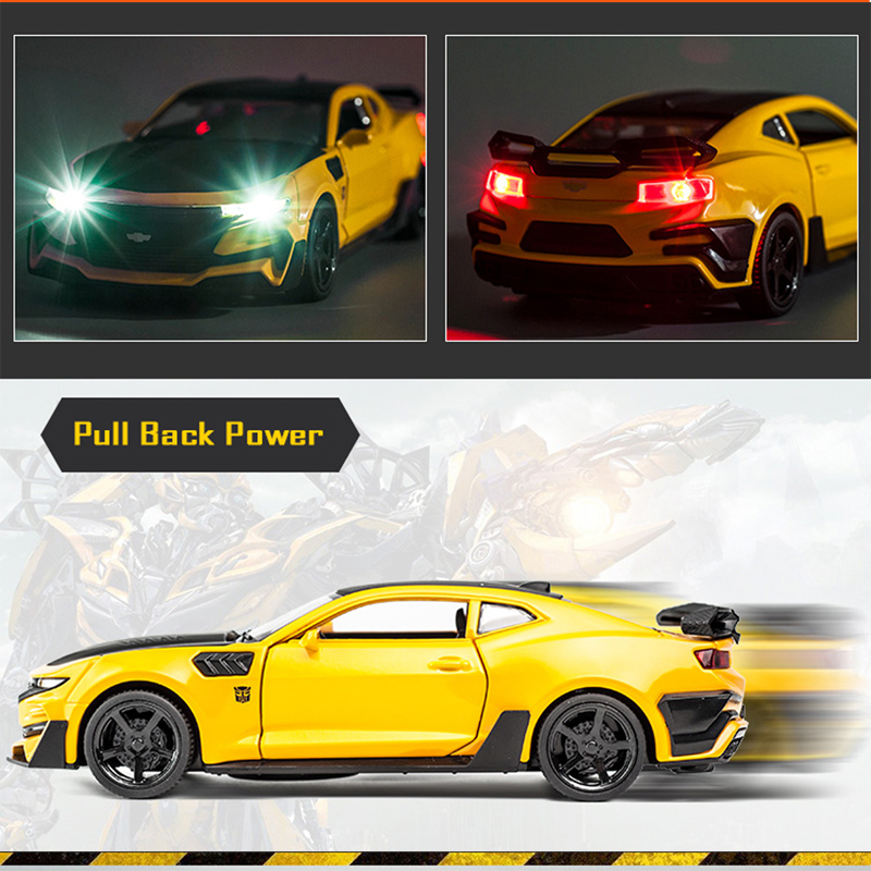 LEO 1:32 Bumblebee Camaro, Alloy Model Car, 4 Doors Open, sound and light effect alloy car model diecast Kids Toys toys for boys baby toys