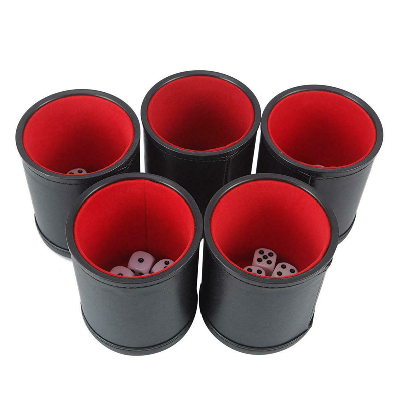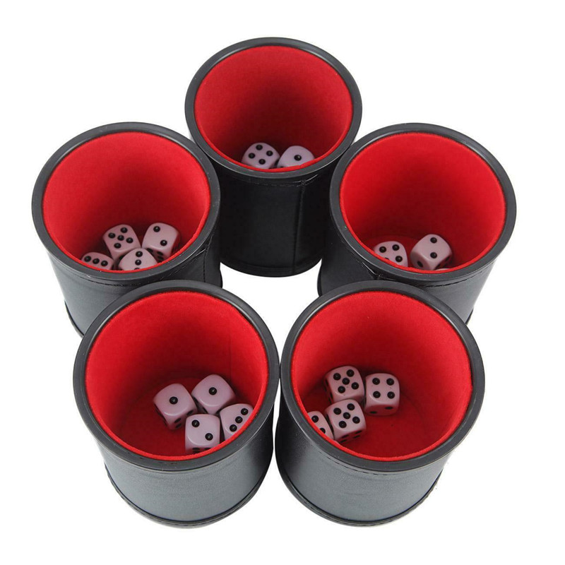 【Ready Stock】5pcs/set Professional Dice Cups W/ 25 White Six-Sided Dice Quality Bicast Leather