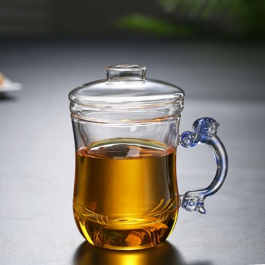 Transparent Glass with Handle Heat-Resistant Flower Tea Cup Tea Cup Coffee Cup Filter Liner Office Cup Piaoyi Cup Thickened