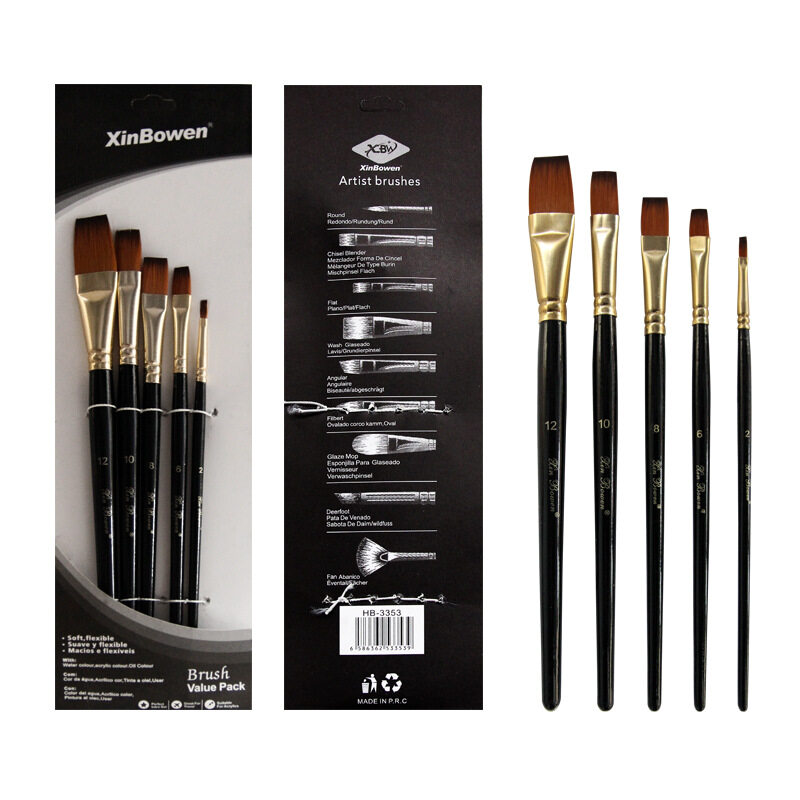 DUKEEN 5 Pcs/Set Professional Nylon Hair Oil Paint Brush Set Round Drawing Brush Acrylic DIY Watercolor Pen for Artists Painting