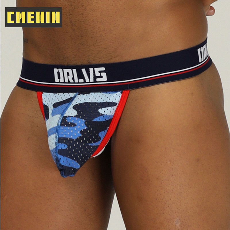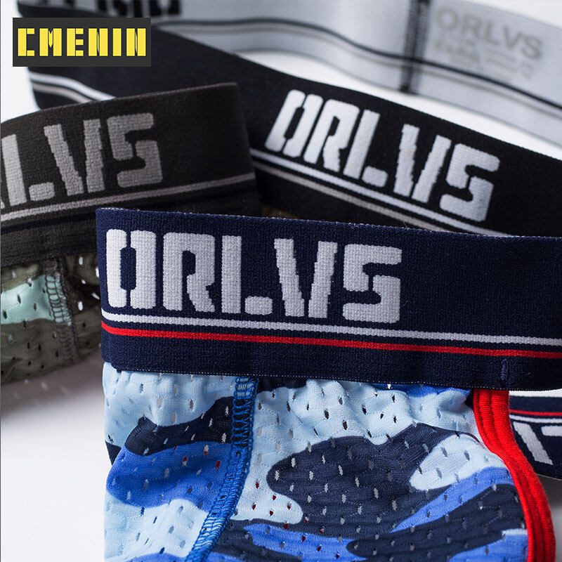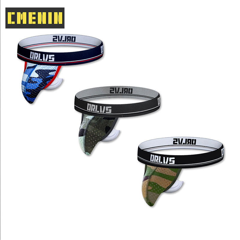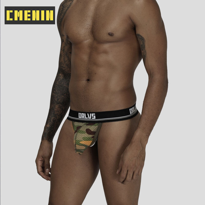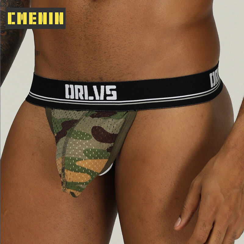 ORLVS 3Pcs Sexy Men Underwear Thongs Mesh Camouflage Breathable G String Underpants OR190