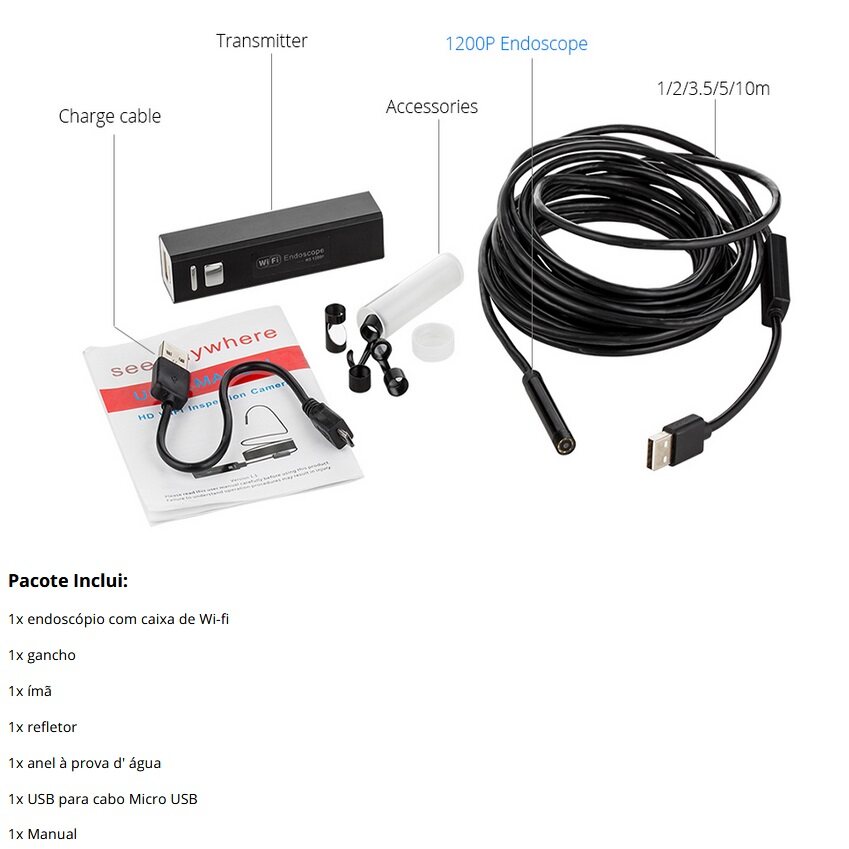 WIFI Endoscope Camera HD 1200P Mini Waterproof Hard Wire Wireless 8mm 8 LED Borescope Camera For Android PC IOS Endoscope