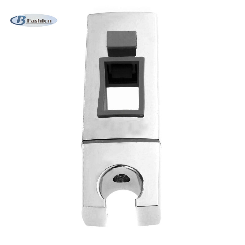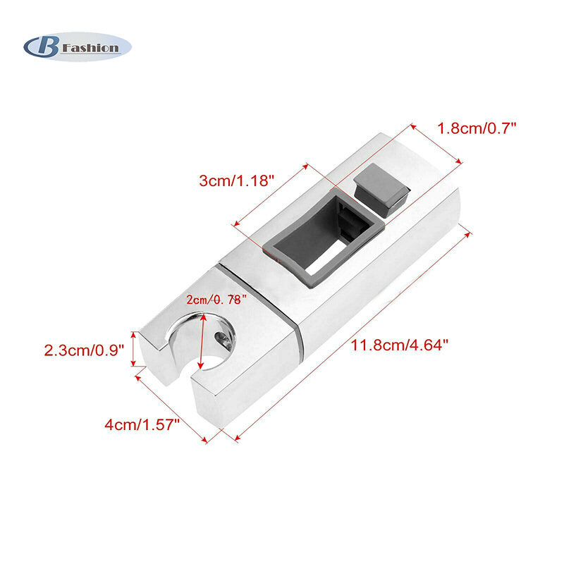 Adjustable replacement bracket holds a handheld shower head securely in place on a slide bar