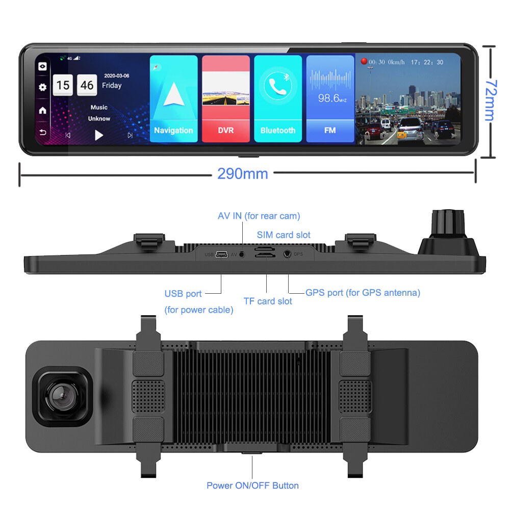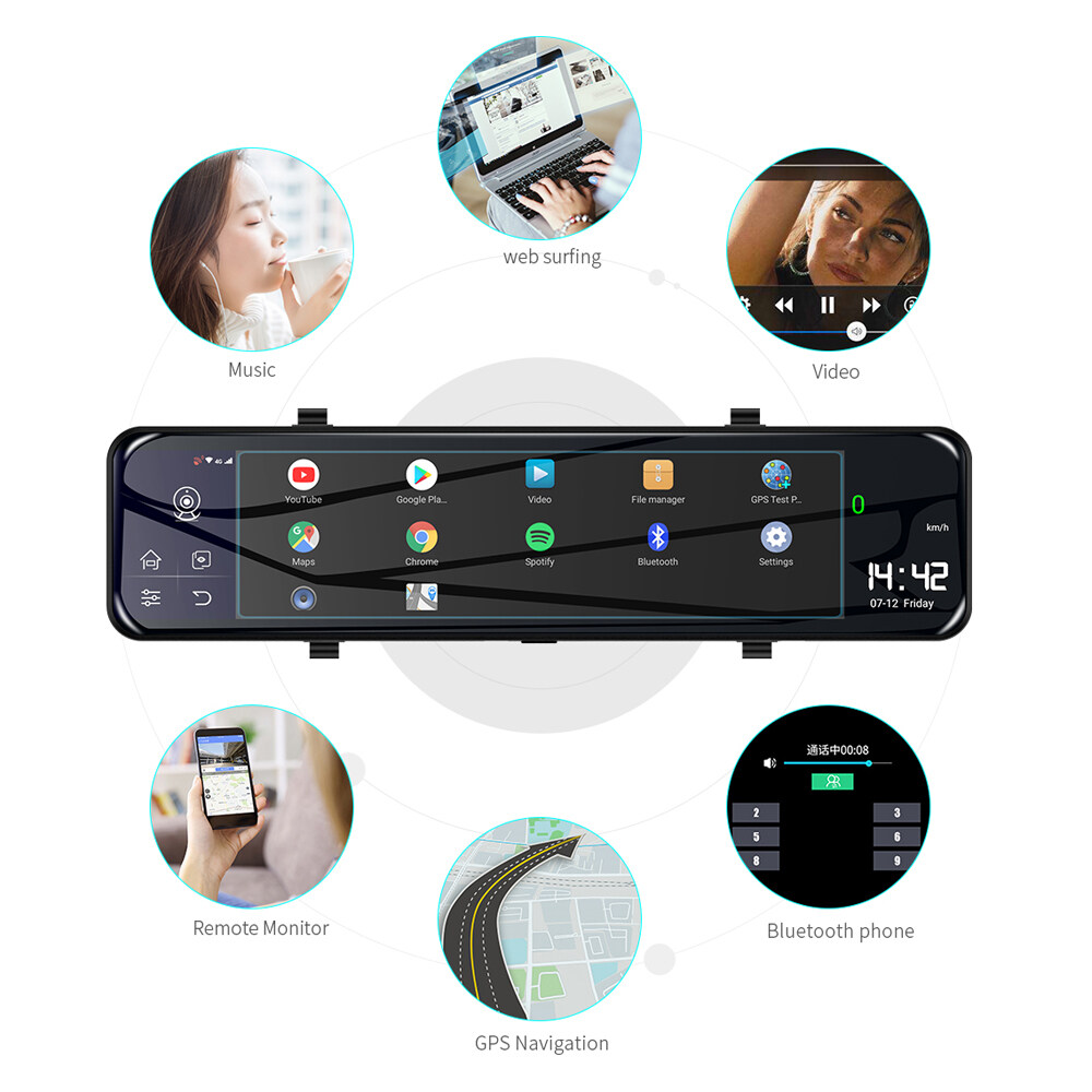 With a bigger screen, see wider rear view 3 times display than 10inch car dvr and original car mirror, fewer blind spots, more safety.