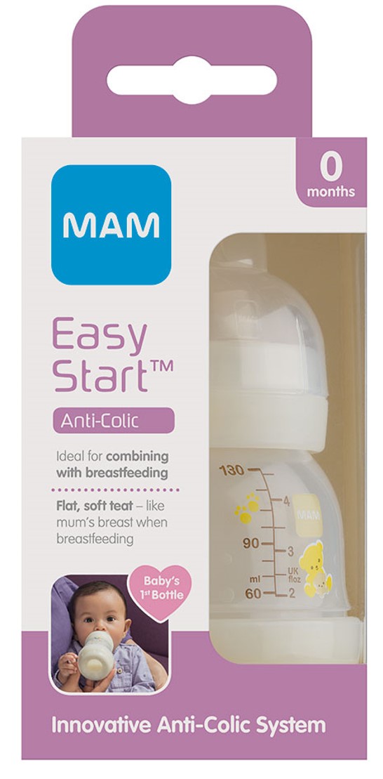 MAM Easy Start Anti Colic Self Sterilising Baby Bottle with Extra Slow Flow Silicone Teat (130ml)