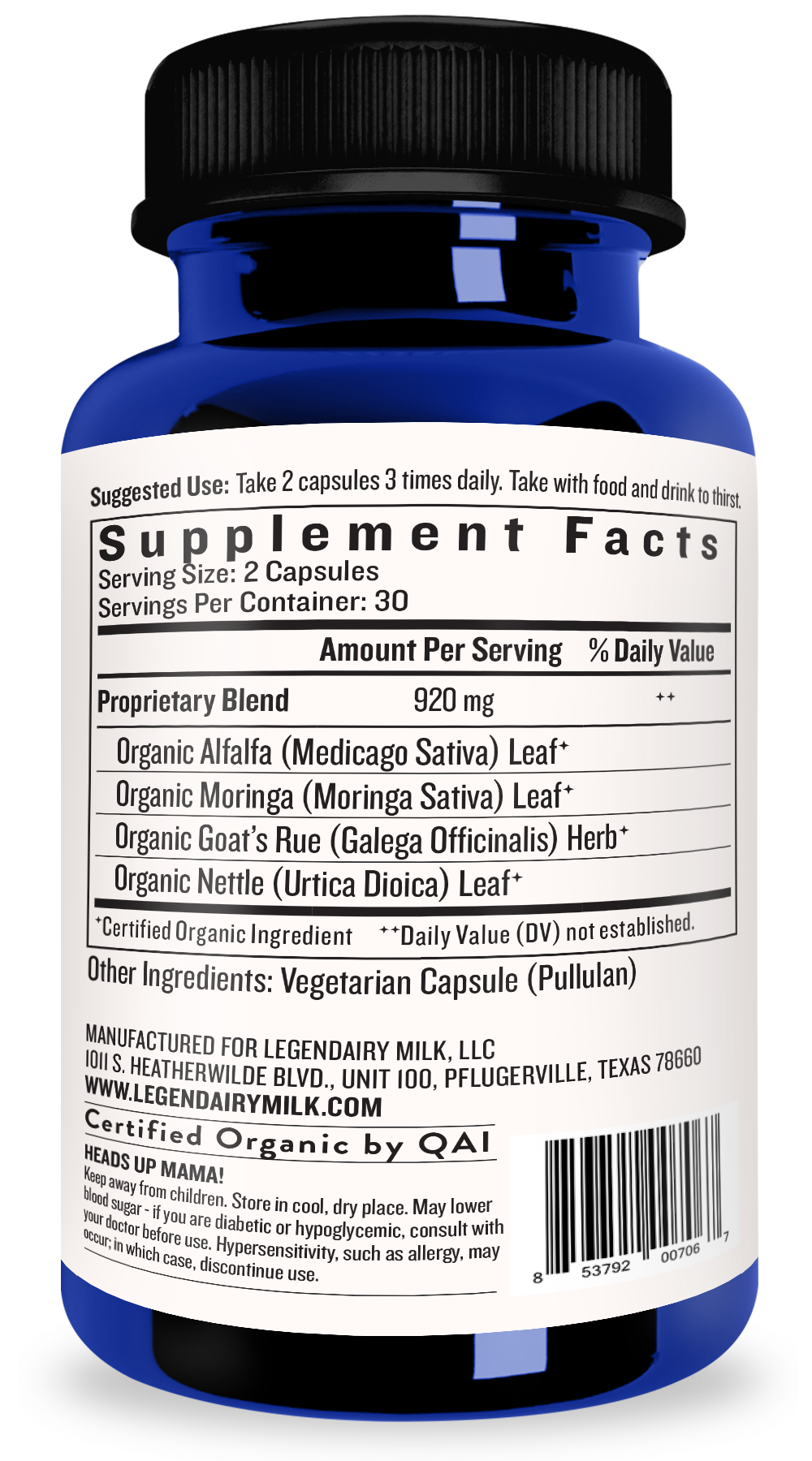 If you are constantly worrying about whether you are producing enough milk, please know that you're not alone. Concern about an inadequate milk supply is the #1 reason why women stop breastfeeding. That's why Legendairy Milk was created. For centuries, certain herbs and foods have been used in different cultures to help promote breast milk production. Our herbal lactation supplements were formulated with these carefully chosen ingredients to target the primary issues that affect milk production. Our products are free of any additives or preservatives so that every capsule is brimming with pure and potent milk-enhancing ingredients. We've gone to great lengths to ensure our formulations are organic and healthy for both mom and baby because we know a Legendairy mom like you deserves a Legendairy product.