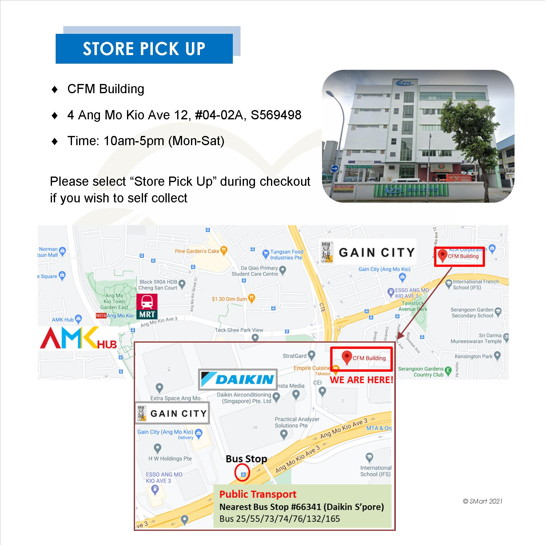 3. Please select 'Store pick up' during checkout if you want to self-collect
