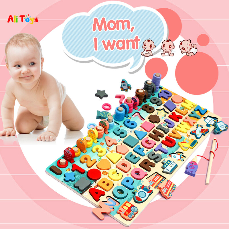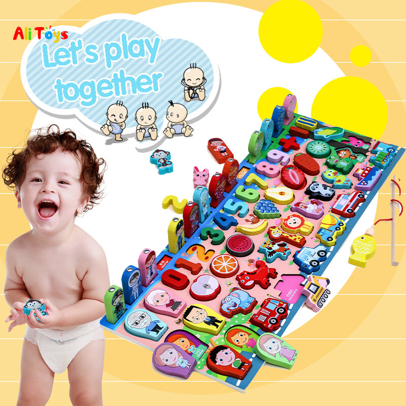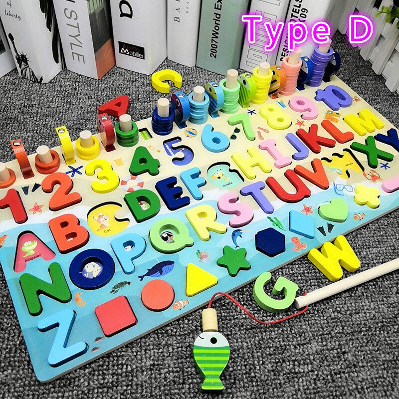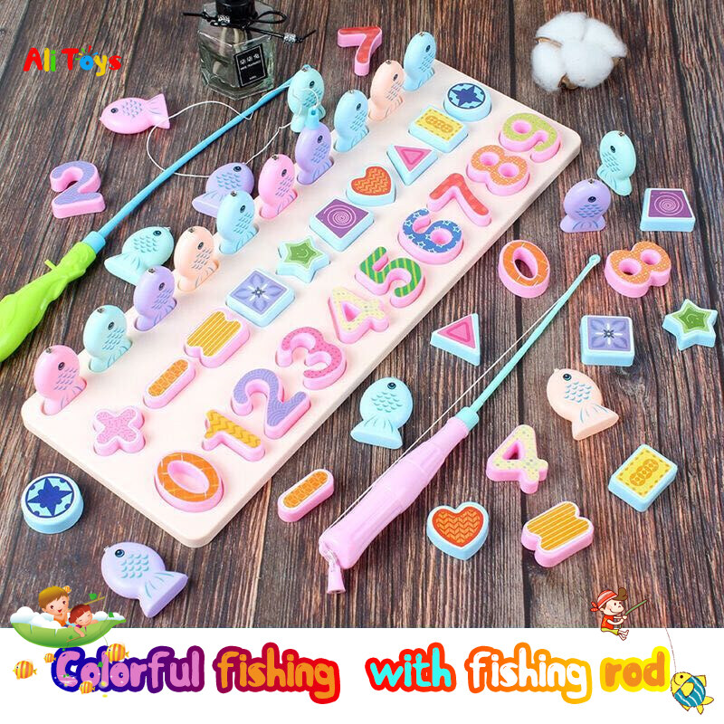 Wooden Puzzle Alphabet Match Numbers Counting 1 To 10 Letters Early Magnetic Fish Fishing Games Colourful 3D Wood Digital Board 4 Styles Available Montessori Math Interactive Early Learning Education