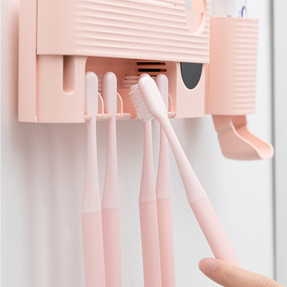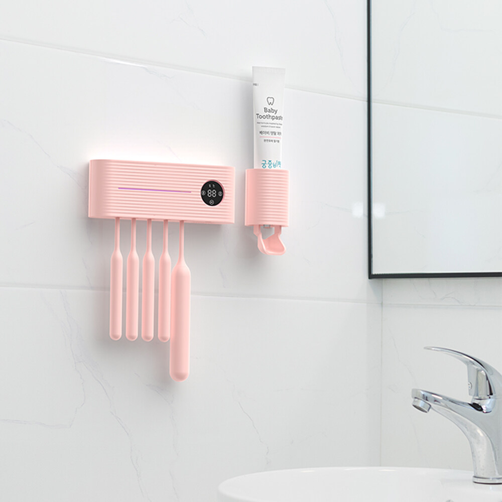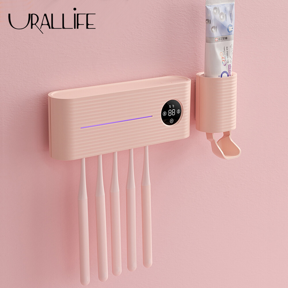 URALLIFE 2 in 1 UV Light Ultraviolet Toothbrush Sterilizer with Automatic Toothpaste Squeezers Dispenser Ultraviolet Antibacteria Toothbrush Toothpaste Holder Cleaner With LED Display For Toilet Home Bathroom Accessories Set