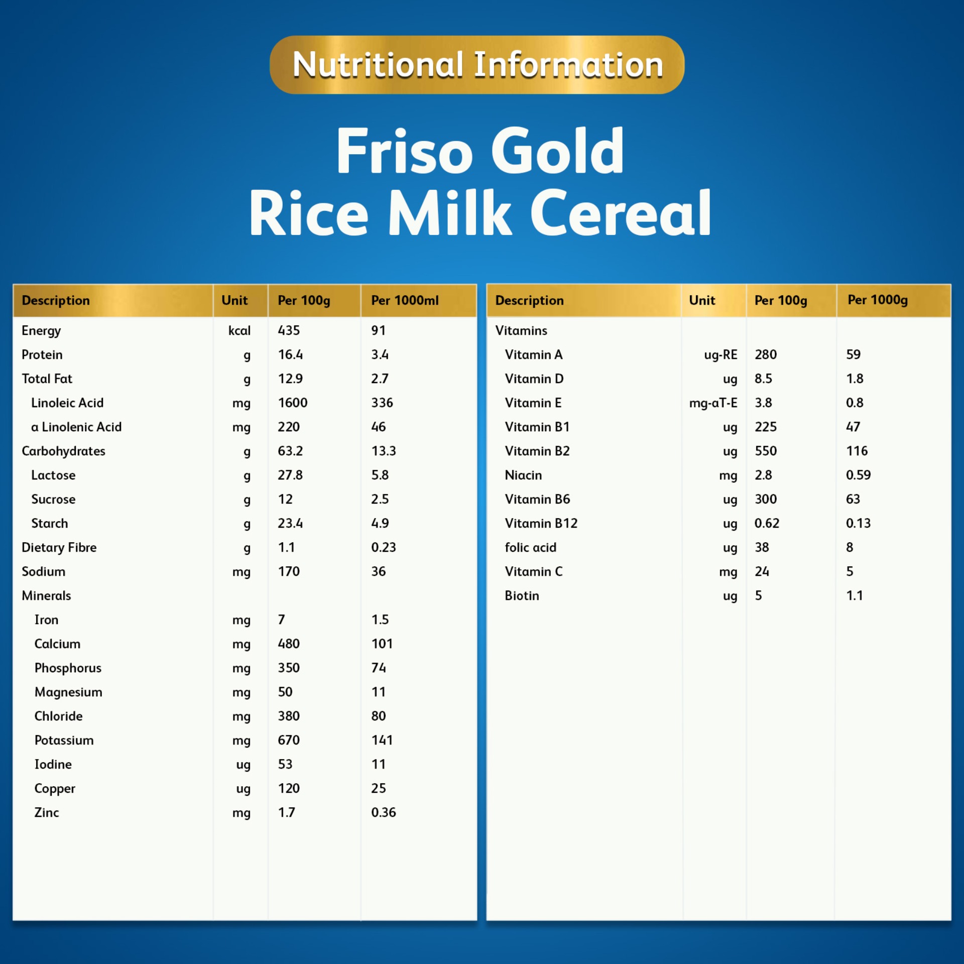 As you wean your baby, they are likely to eat less until they become more familiar with solid food. Friso Gold rice-based milk cereals are rich in important nutrients to ensure your baby has a balanced diet. They are also made with milk powder so they taste more familiar to your baby. The smooth texture eases their first step into eating solids and is easier for little tummies to digest. It’s easy for you too because Friso Gold cereals are prepared the same way as Friso Gold formula – just add water.