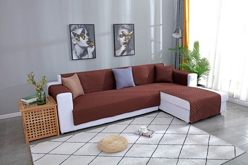 Waterproof Corner Sofa Cover for Living Room Non Slip L Shape Quilted Couch Cover Solid Slipcover Sofa Protector