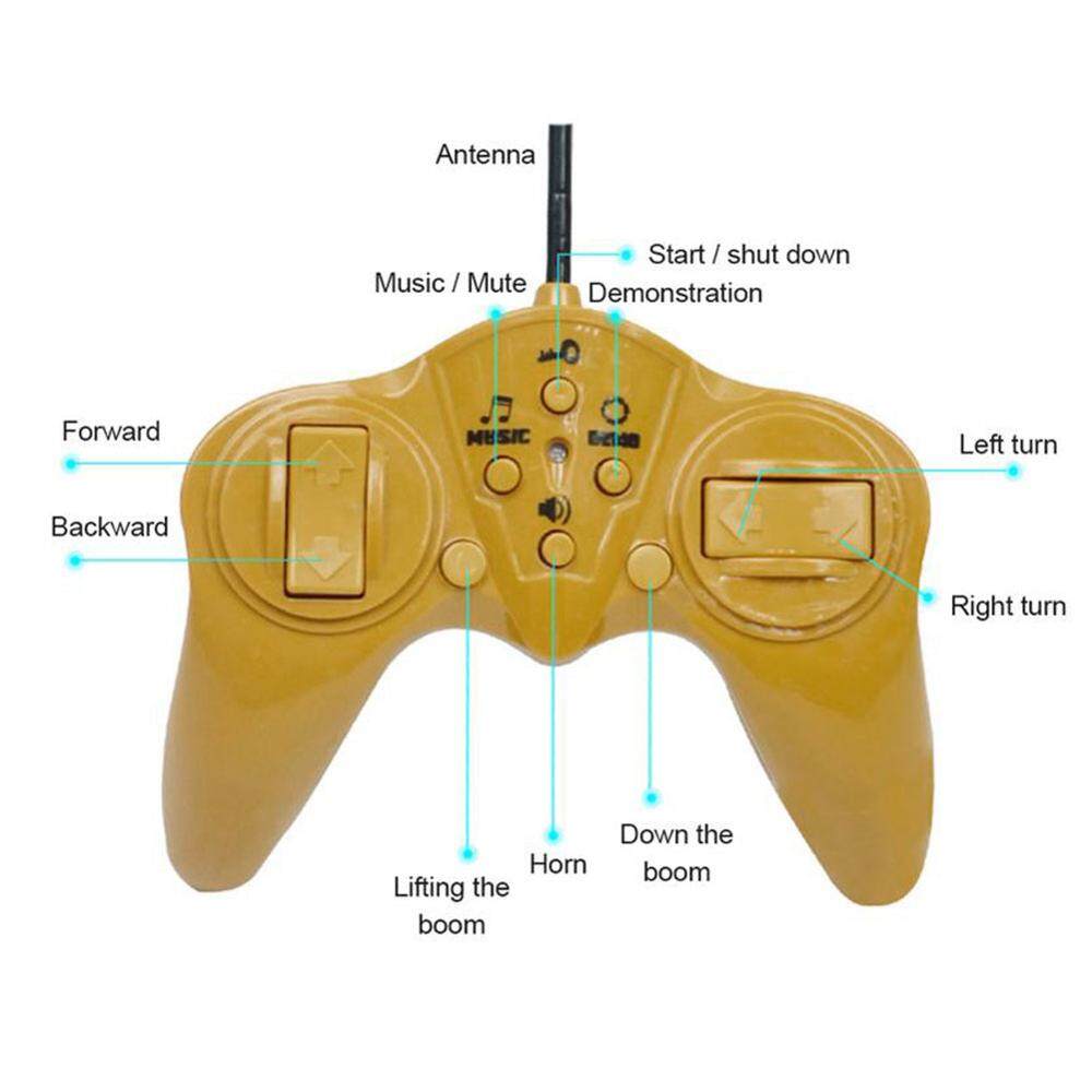 Product features: forward and backward, left turn and right turn, automatic demonstration, boom telescopic and lifting, light music, crane table can be rotated