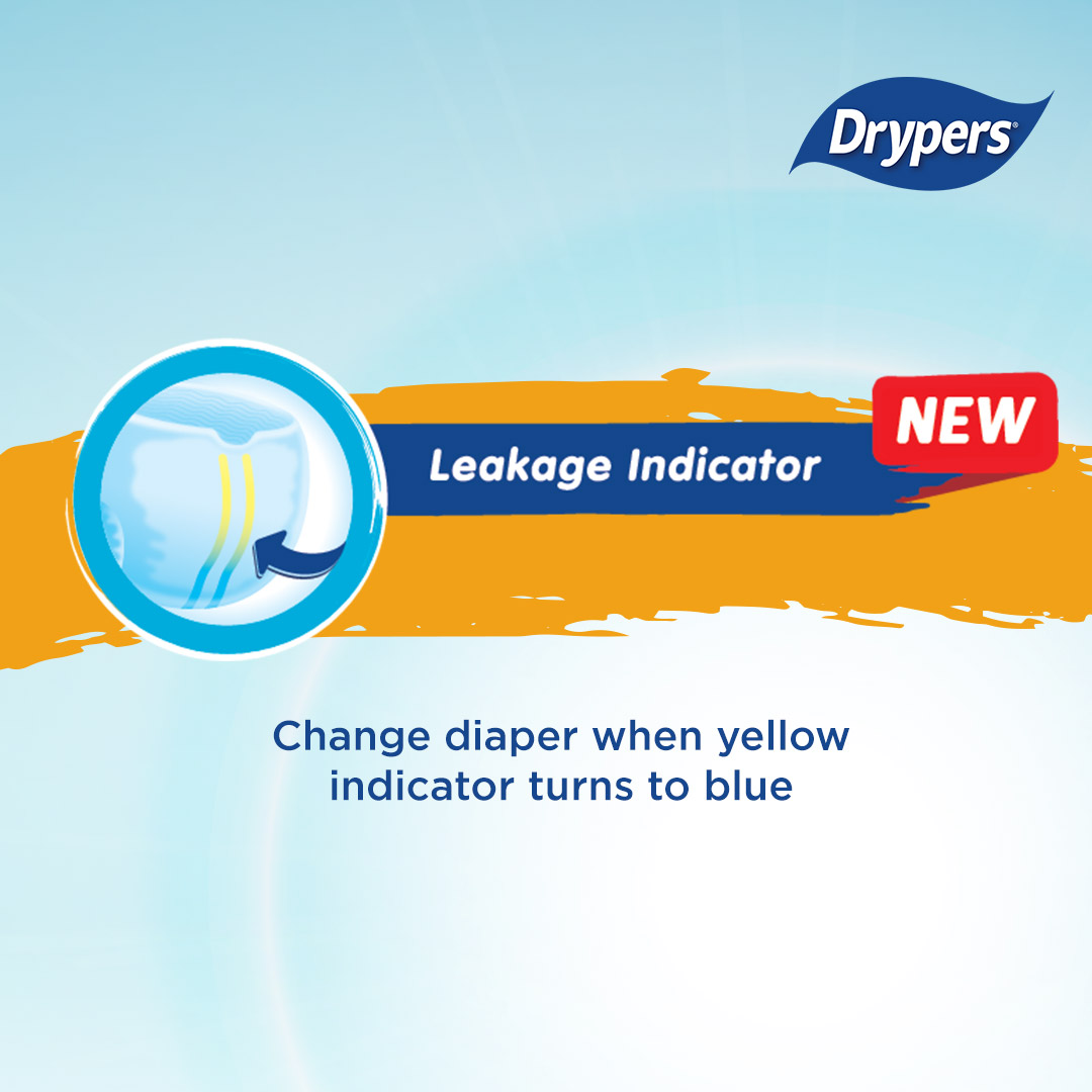 Our NEW Drypers Drypantz with improved DRY & FIT coupled with NEW PRO-SKIN™ pH balanced layer which protects baby from skin irritation. What’s more? It is ECO-GREEN, our commitment to caring for baby & nature.Drypers Drypantz is now with 6 AbsorbDryLayers™ effectively absorbs, distributes, and locks in urine to keep baby’s skin dry and comfortable for up to 10 hours dryness. Each of the layer are enhanced with the NEW PRO-SKIN™ pH Balanced Layer helps to balanced off the urine of baby so to protect baby from skin irritation. Made with 100% Breathable Self-Cool Cover™ that allows air circulation to keep baby’s skin cool and dry. Naturally releasing heat and moisture through micro-pores, even during hot weather. It also come with tailored FIT for babies at different growth stages. CrawlFIT™ for M sized specially designed for babies who are learning to crawl, provides a perfect cuddle fit around baby’s waist & leg for active movement & leakage protection. MoveFIT™ for L-XXL sized provide great fit & leakage protection as baby grows & discovers the world around him/her. NEW Drypers Drypantz is now come with wetness indicator to remind parents to change when it turns from yellow to green! Making diapering worry free; and to focus on child’s development.As our commitment to caring for baby & nature, it is ECO-GREEN! Manufactured without chemicals that are harmful to the environment (MIT/CMIT, BPA, PVC, Dioxin, Heavy Metal, Phthalate and Organotin), eco-friendly ink and USDA certified, both our diaper bag & box can be recycled with the relevant recycle system.
