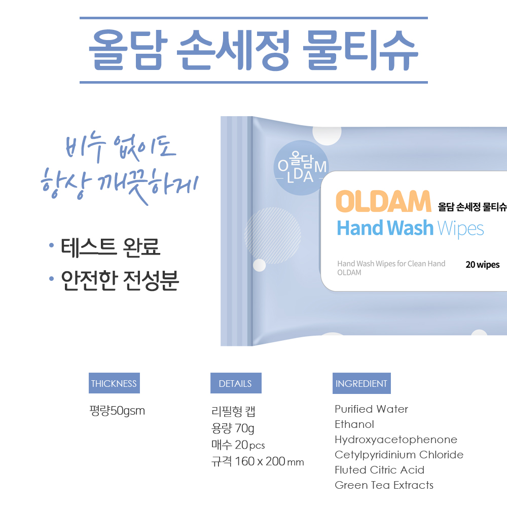 【Oldam Clean 올담】hand wipes | contains 60% ethanol kills 99.9% germs | Disinfecting antibacterial wipes | made in korea