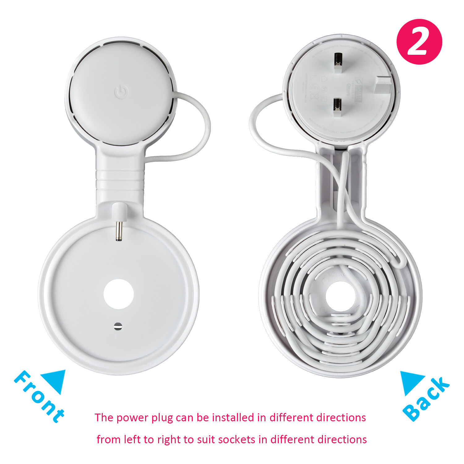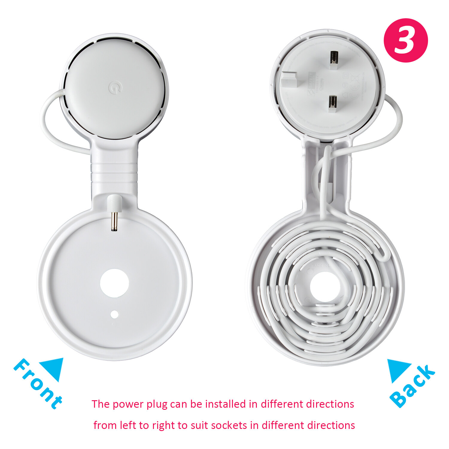 • CORD MANAGEMENT and STURDY --- The cable can be wrapped through the reels which is back of the google nest point wall mount where is specially designed for the Google nest wifi Point to hide the messy wires . From then on , say goodbye to the meesy wires .